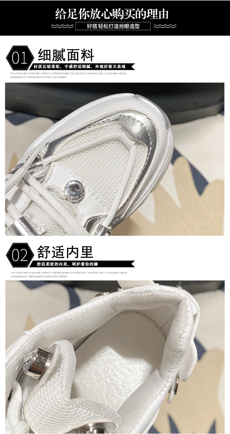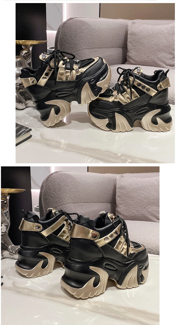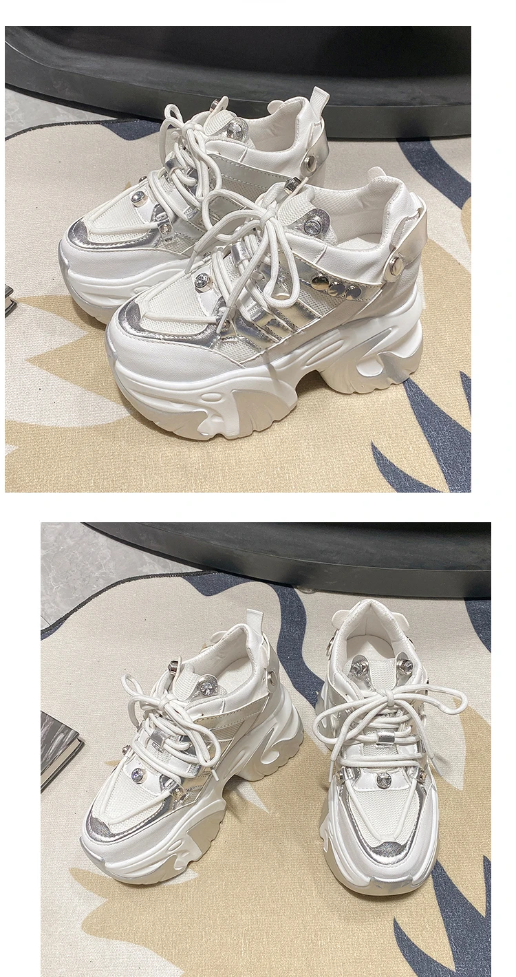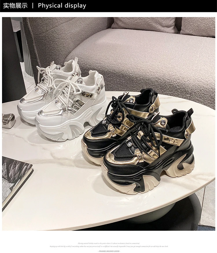 10CM New 2024 Spring Women Chunky Sneakers Heels Lace-up High Platform Sports Shoes Woman Breathable Mesh Shoes Leather Sneakers