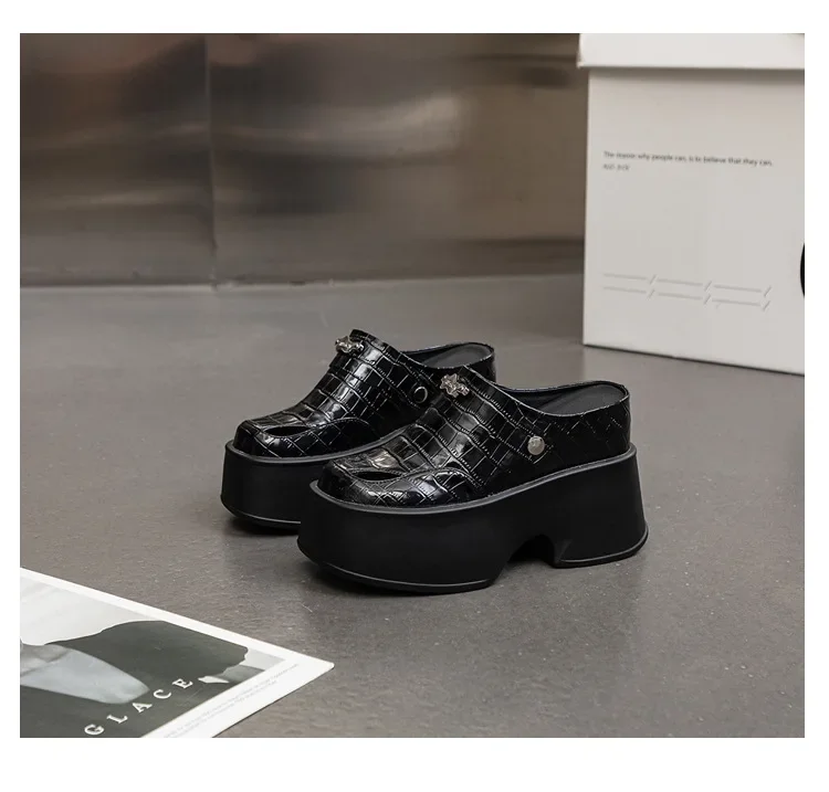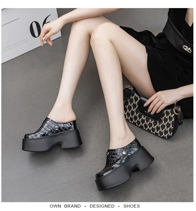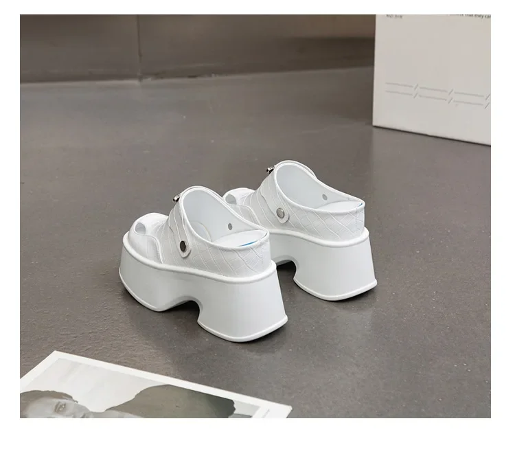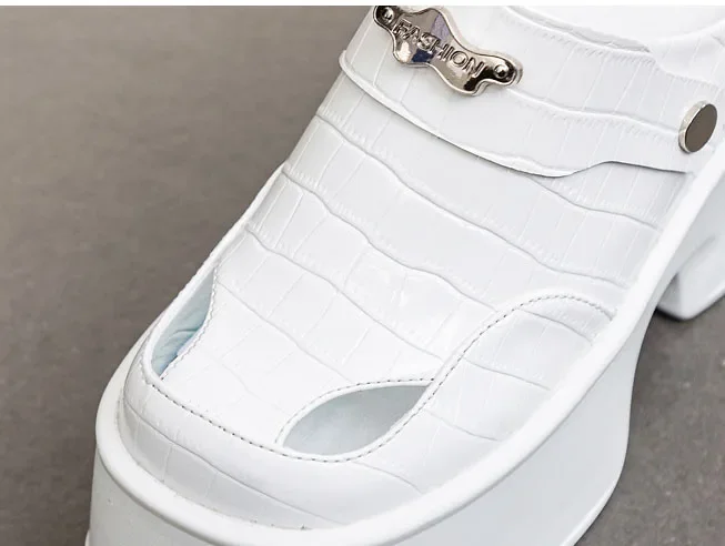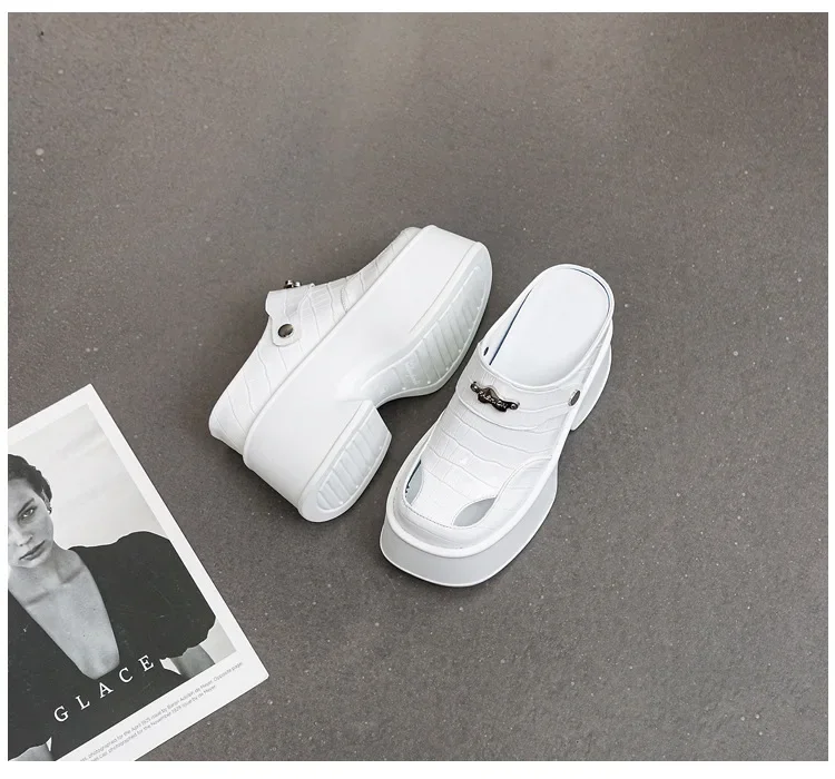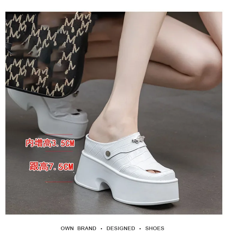 11cm Genuine Leather Synthetic Women Summer Platform Wedge Brand Bling Shoes Fashion Casual High Slippers Sandals Hollow