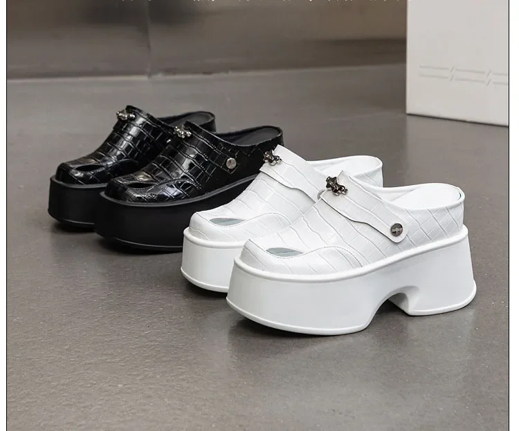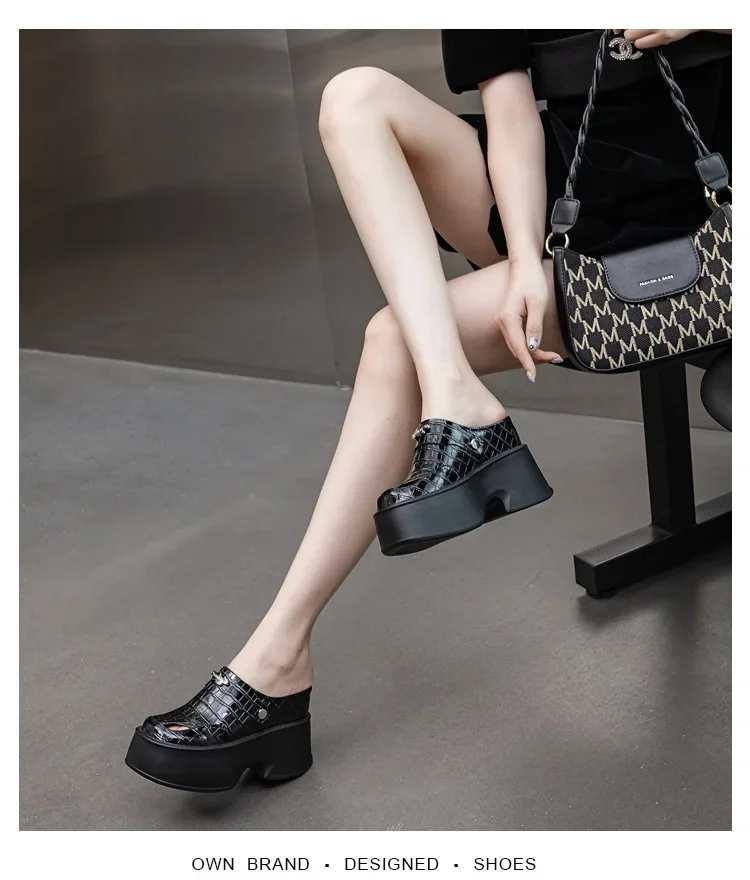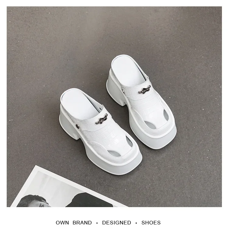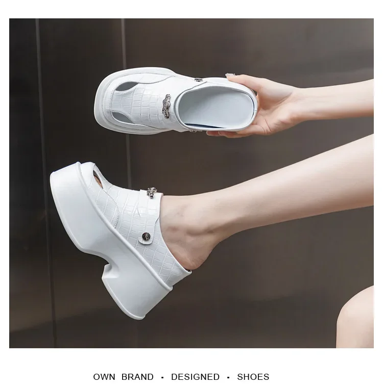 11cm Genuine Leather Synthetic Women Summer Platform Wedge Brand Bling Shoes Fashion Casual High Slippers Sandals Hollow