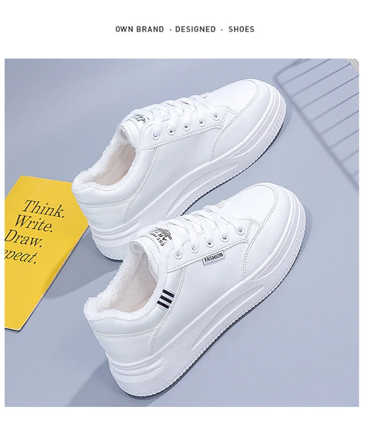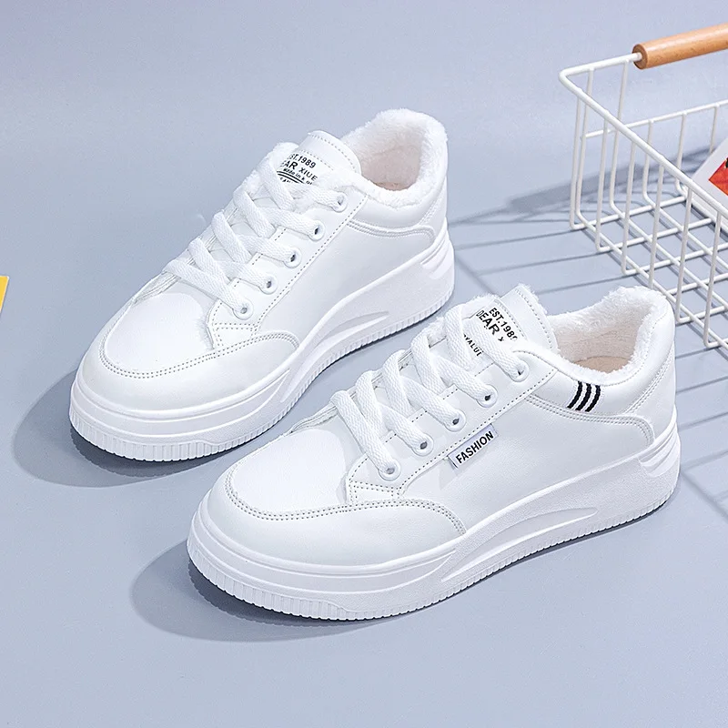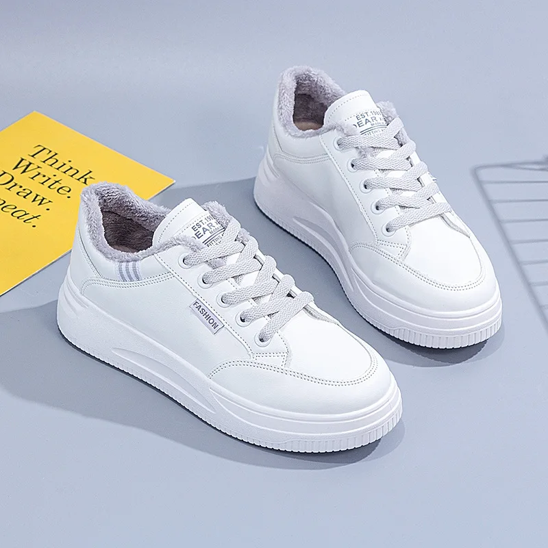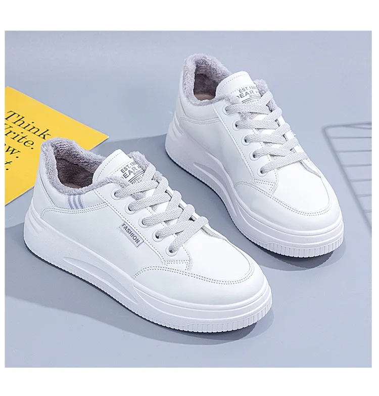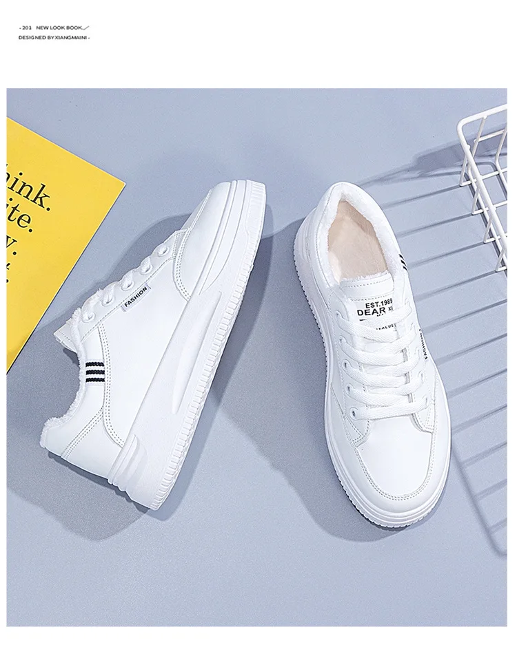 2021 Autumn Winter New Vintage Plus Fleece Women's Casual Shoes All-match Chic Shoe for Ladies Fashionable Flat Shoes Women