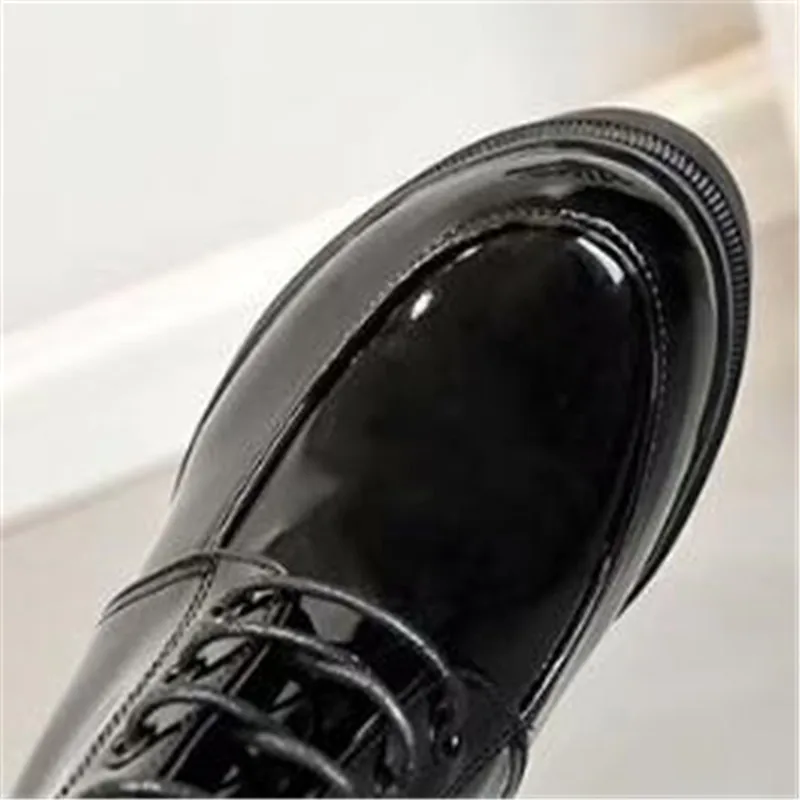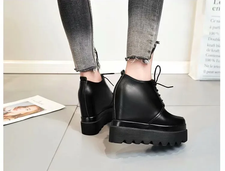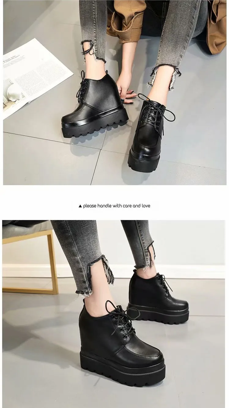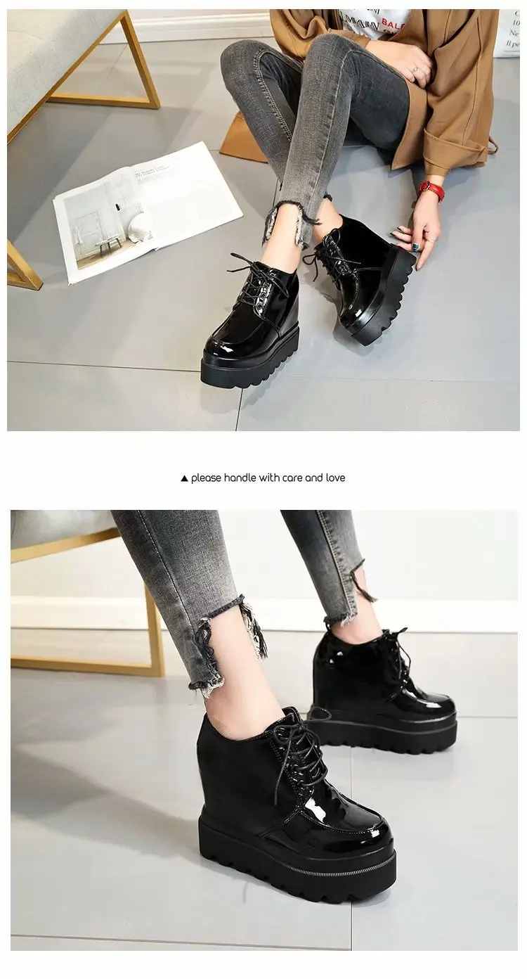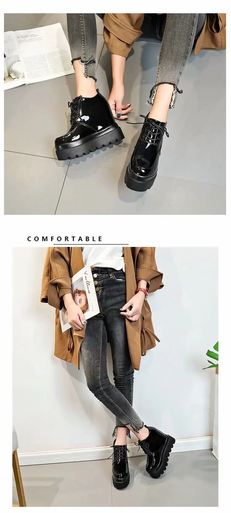 2021 High Platform Patent Leather Casual Shoes Women Autumn Wedge Trainers For Women 12 CM Height Increasing Sneakers Black