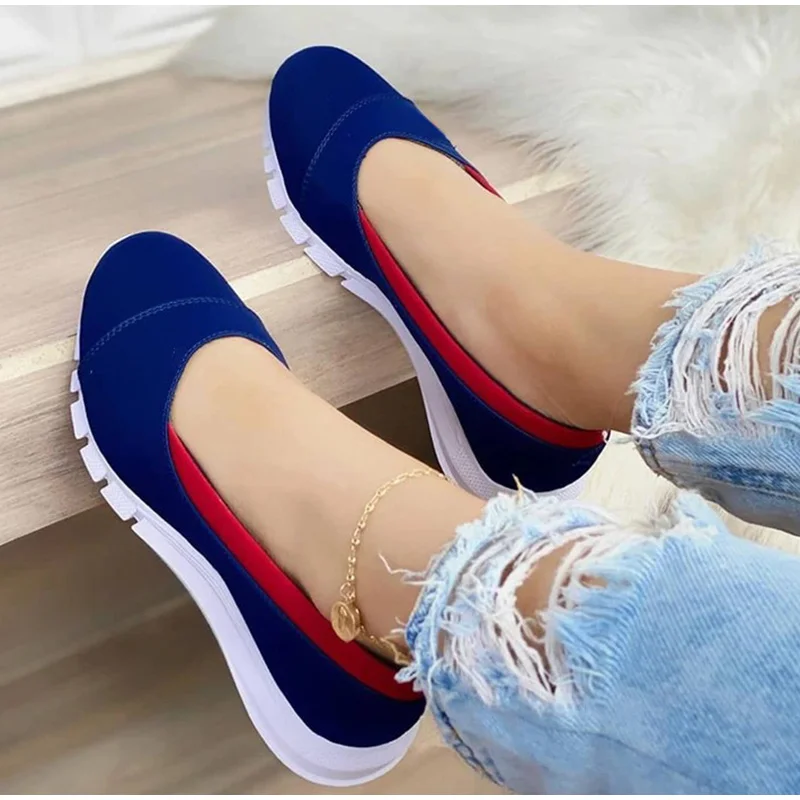 2022 Summer Flat Shoes for Women Fashion Patchwork Casual Shallow Slip On Ladies Vulcanized Shoes Round Toe Outdoor Female Shoes