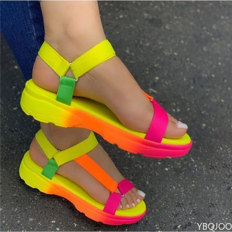 2022 Summer New Sandals Rainbow Color Flat Women Sandals Luxury Sandals Women Designers Outdoor Beach Opened Toe Shoes