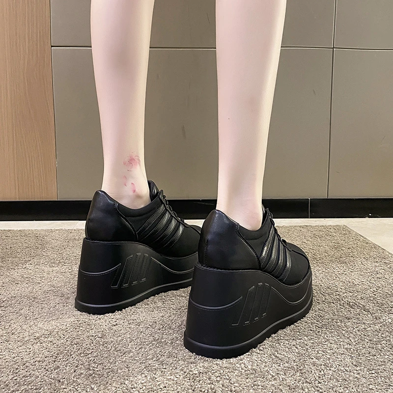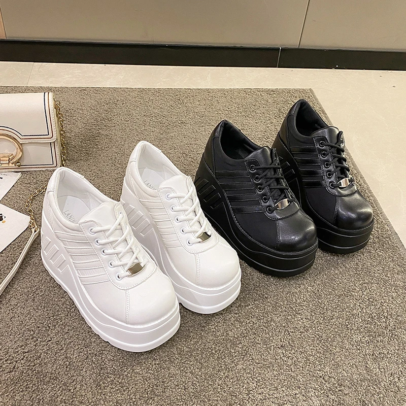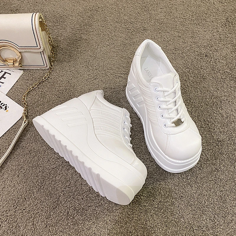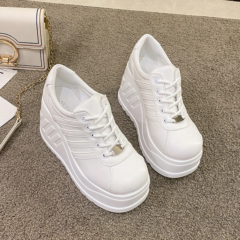 2022 White Shoes Women Lace Up pu Leather Wedges High Heel Pumps Shoes Female Breathable Chunky Platform Fashion Sneakers Size42
