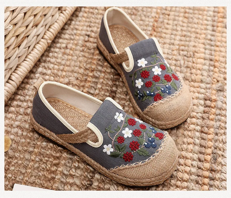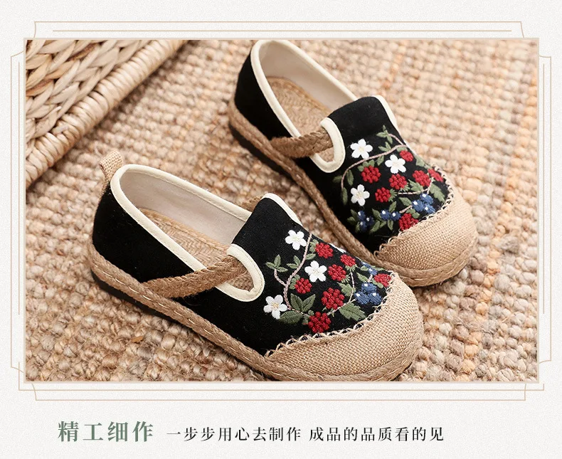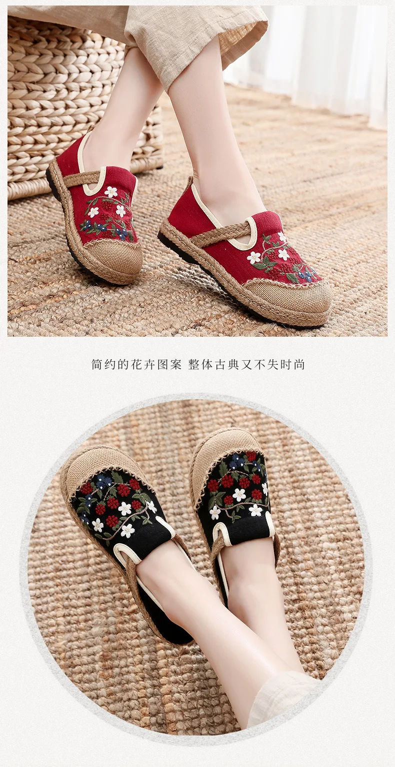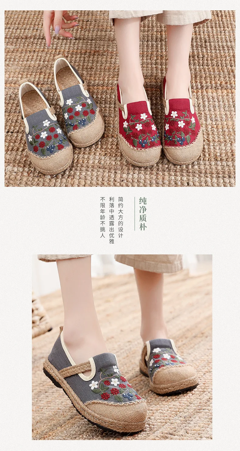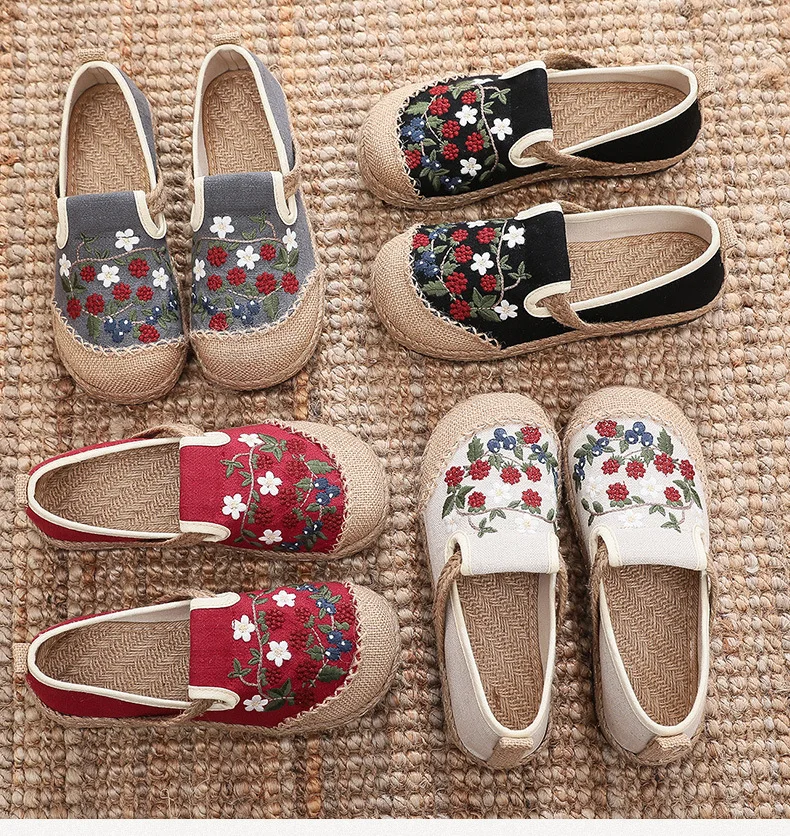 2022 Women Linen Canvas Shoes Retro Bohemian Slip-On Flat Comfortable Loafers Ladies Casual Embroidered Hemp Sole Sneakers