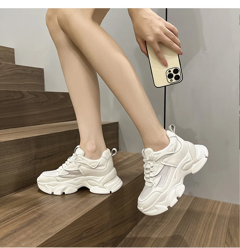 2023 Autumn Genuine leather Women Sneakers High Casual Sports Shoes Woman Outdoor Daily Footwear