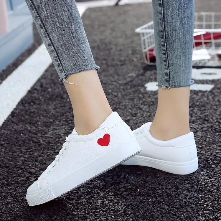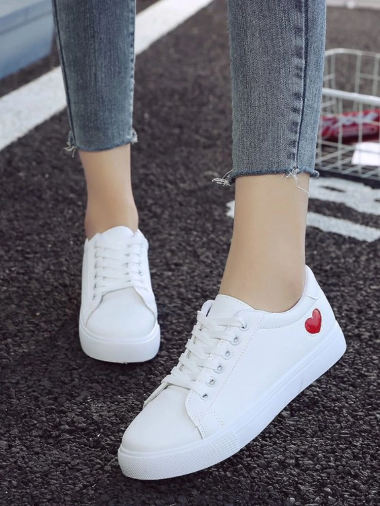 2023 Autumn Woman Shoes Fashion New Woman Leather Shoes Ladies Breathable Cute Heart Flats Casual Shoes White Sneakers New In