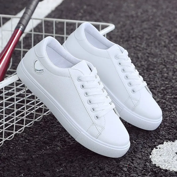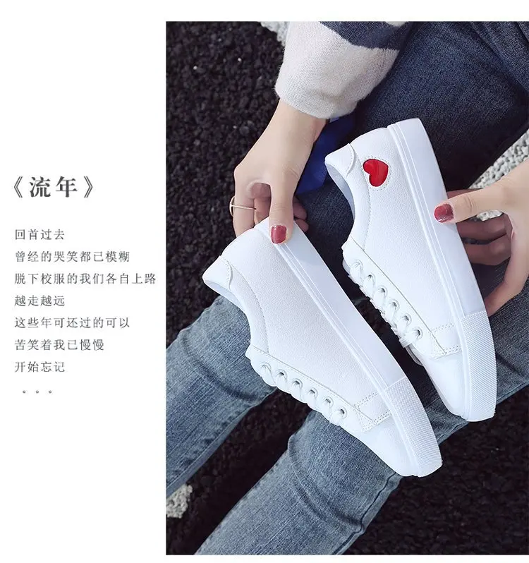 2023 Autumn Woman Shoes Fashion New Woman Leather Shoes Ladies Breathable Cute Heart Flats Casual Shoes White Sneakers New In