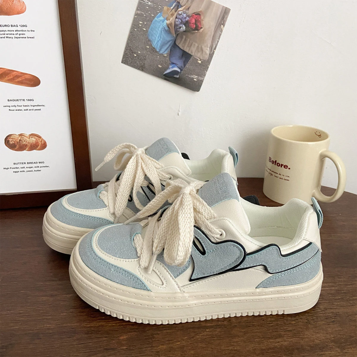 2023 Hot Sale Shoes for Women Lace Up Women's Vulcanize Shoes Autumn Round Toe Heart Shoes Ladies Platform Casual Sneakers