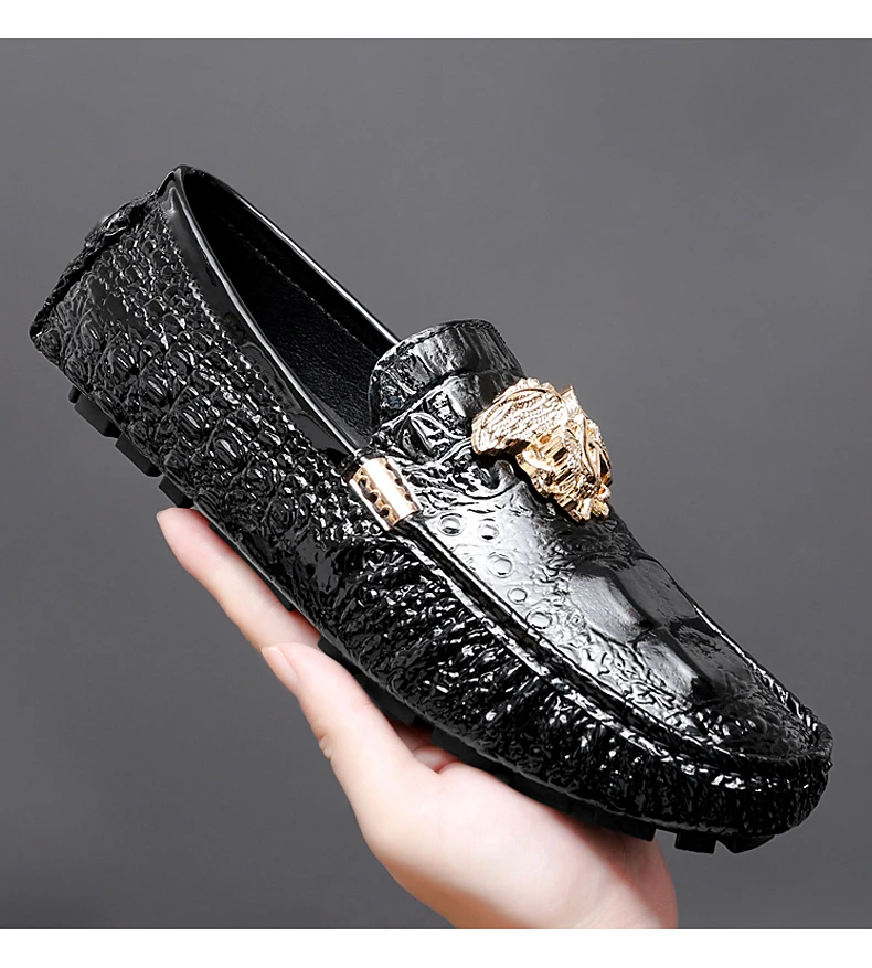 2023 New Men Loafers Leather Driving Boat Shoes Slip-On Casual Shoes Breathable Soft Male Flats Red Lazy Beanie Shoes Plus Size