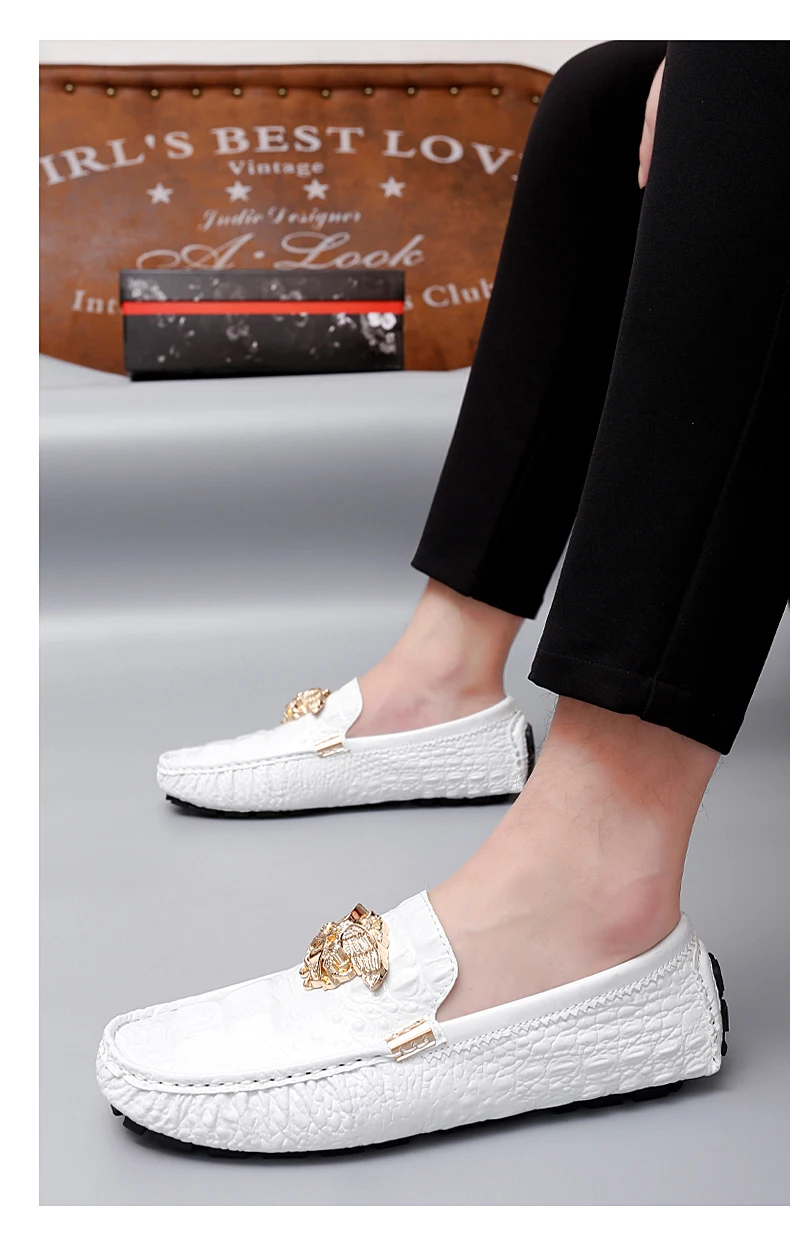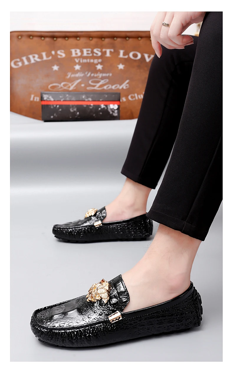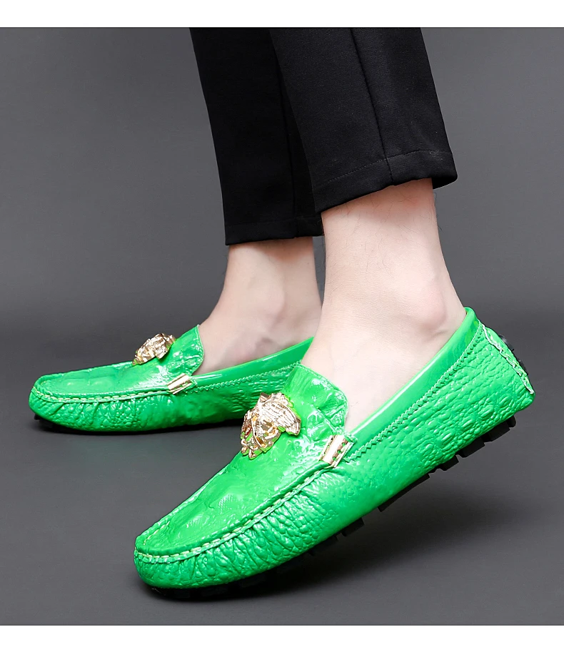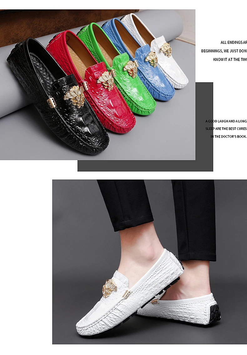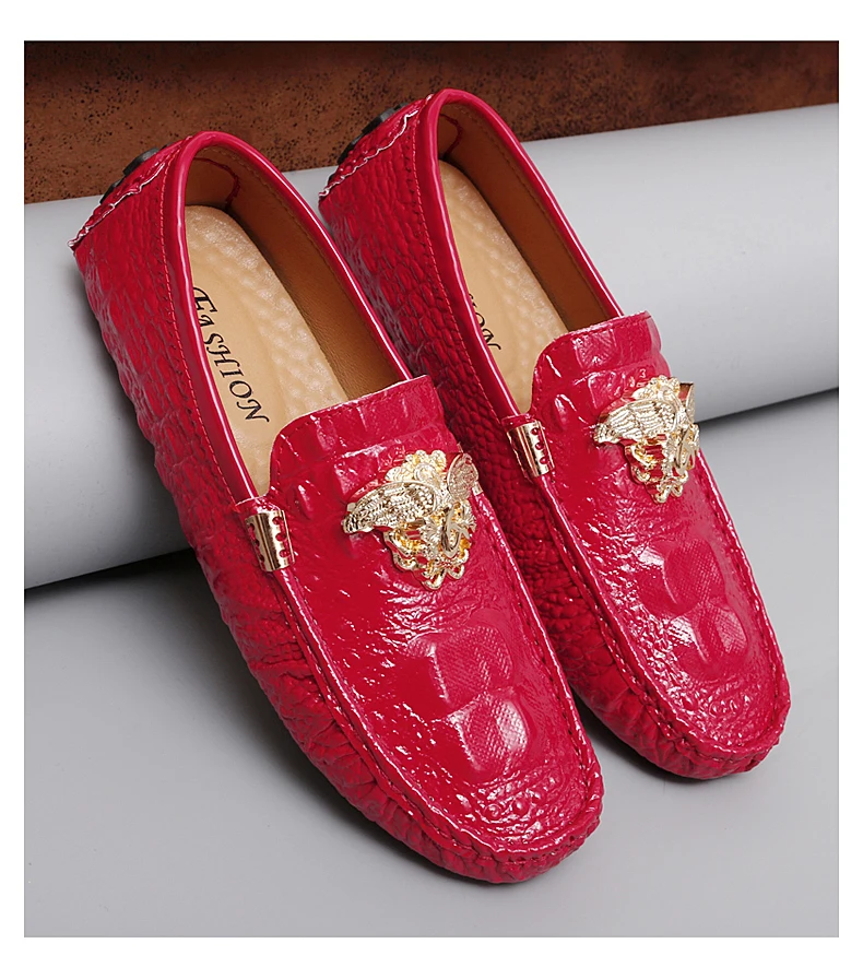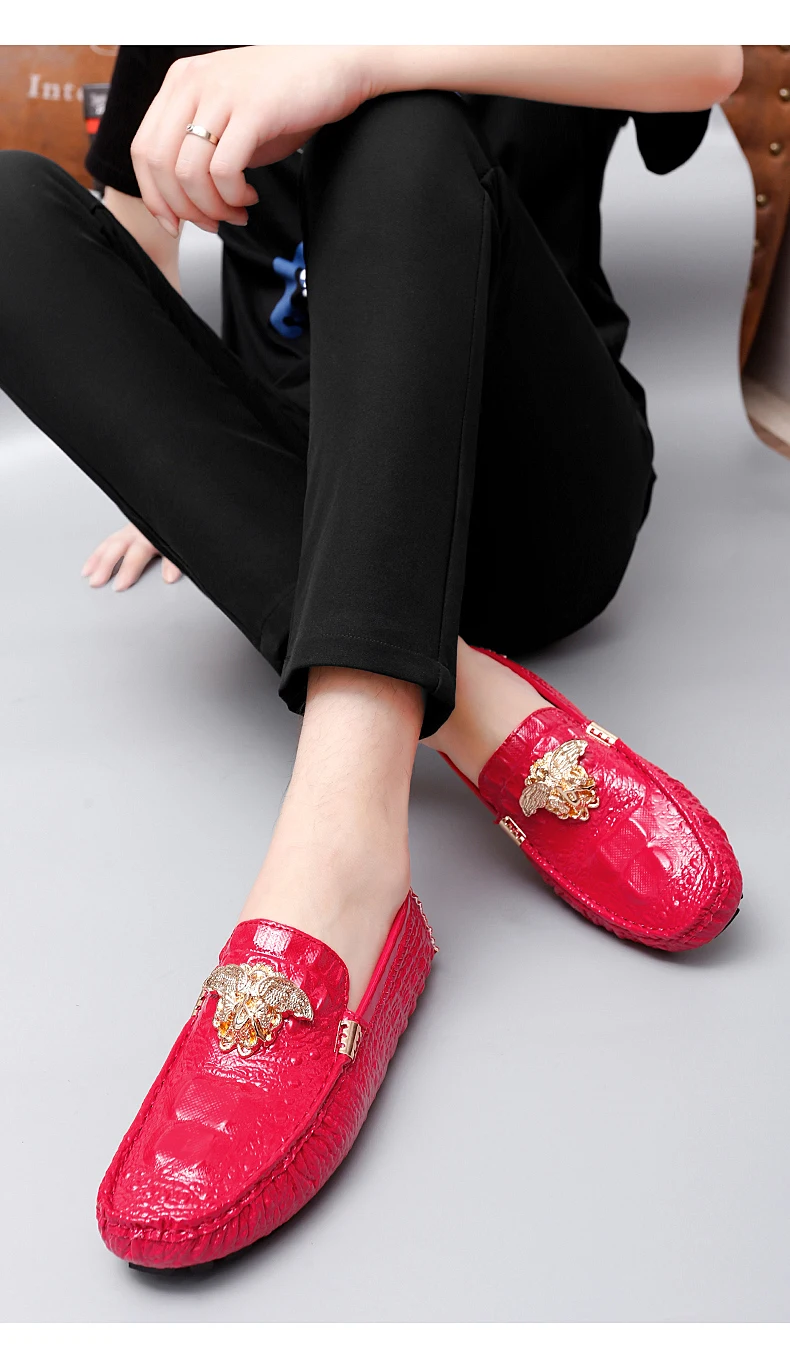 2023 New Men Loafers Leather Driving Boat Shoes Slip-On Casual Shoes Breathable Soft Male Flats Red Lazy Beanie Shoes Plus Size