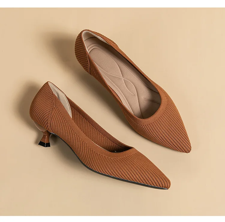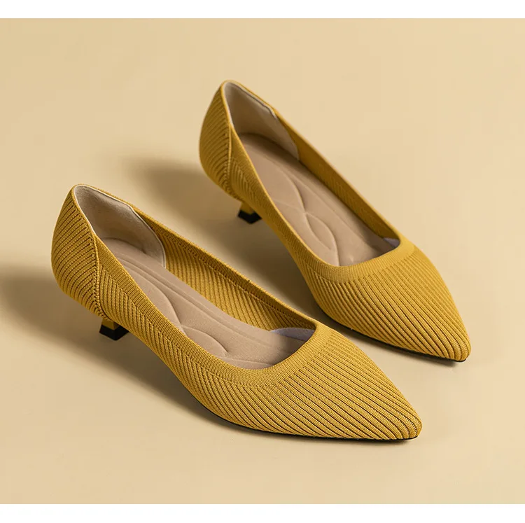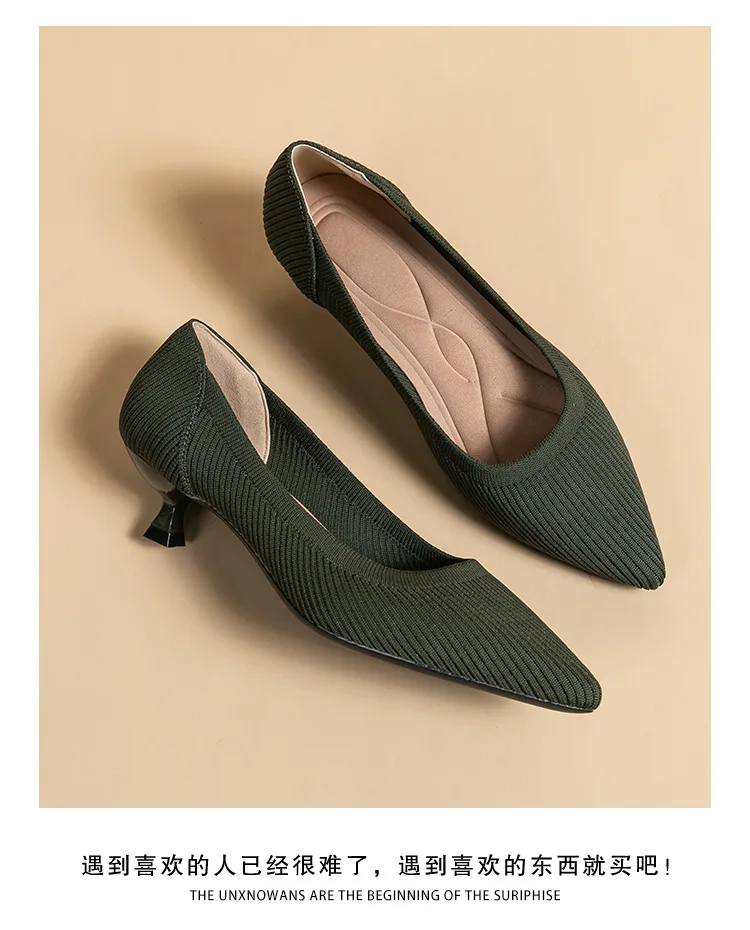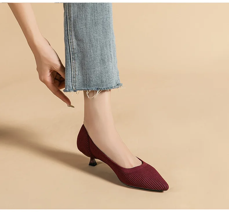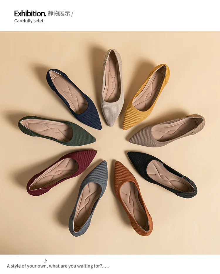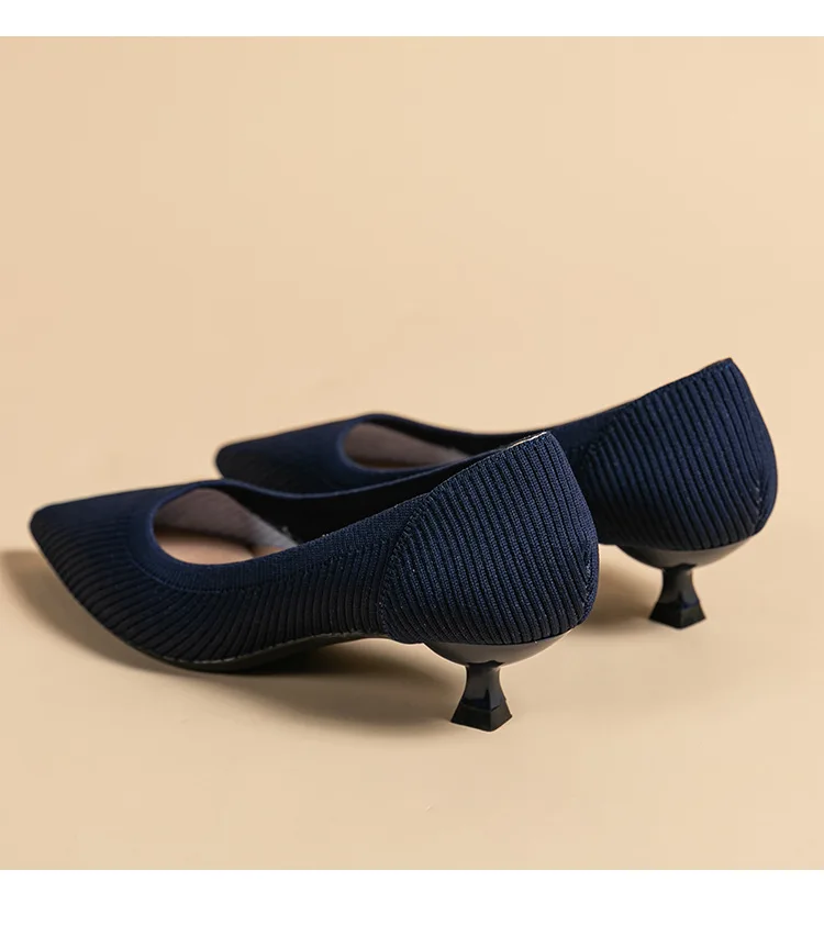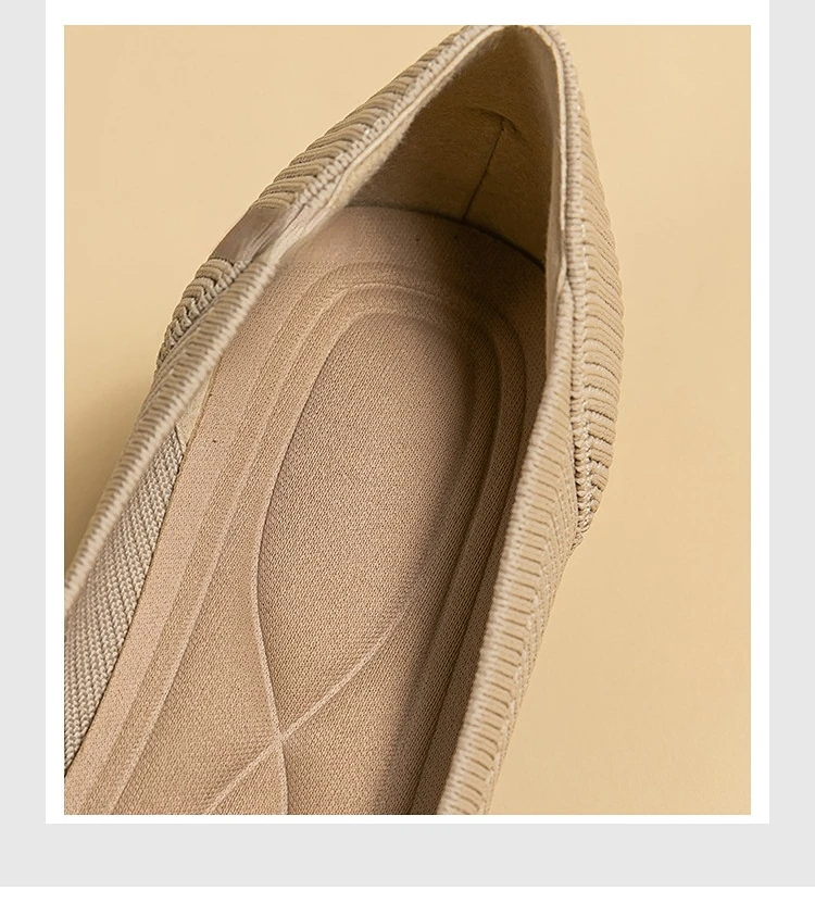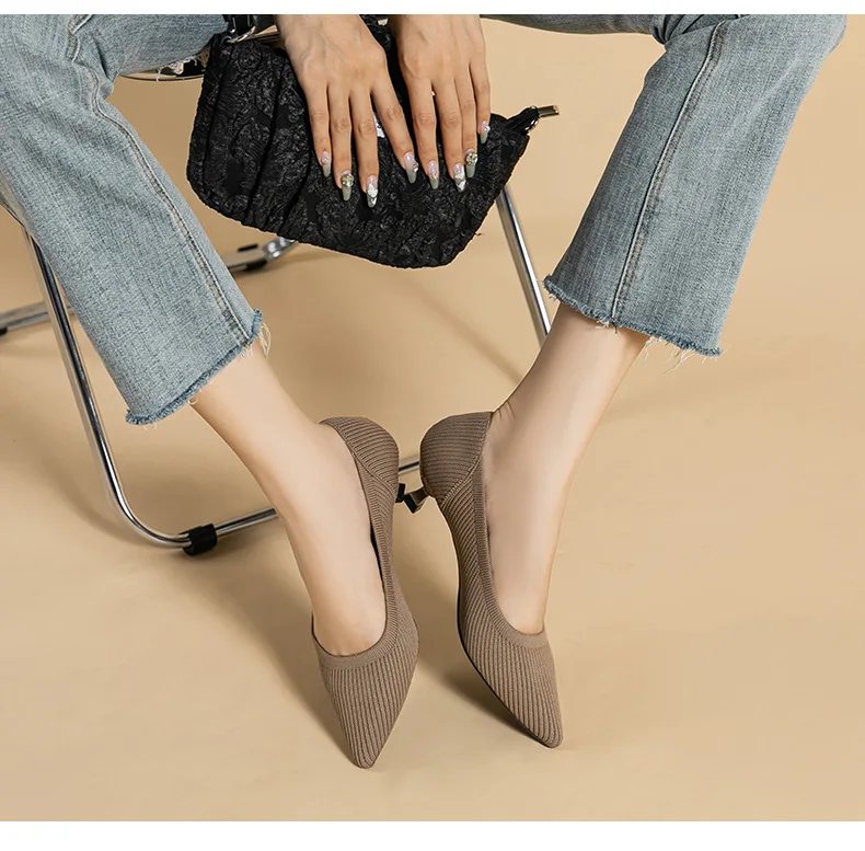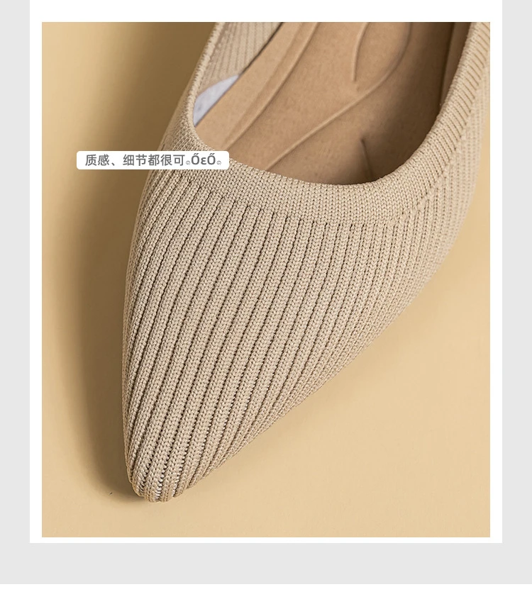 2023 Pointed Toe Solid Color Stretch Knitted Shoes Pumps Slip on Sole Low Heels Breathable Loafers Women Mesh Shallow Sock Shoes
