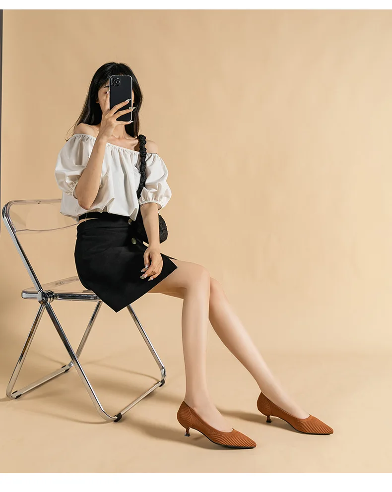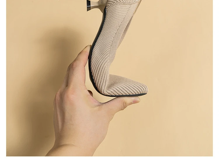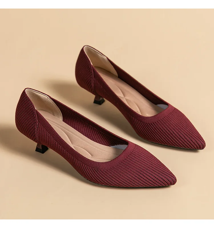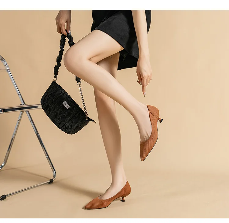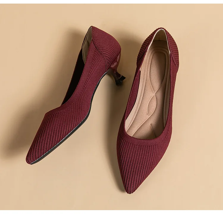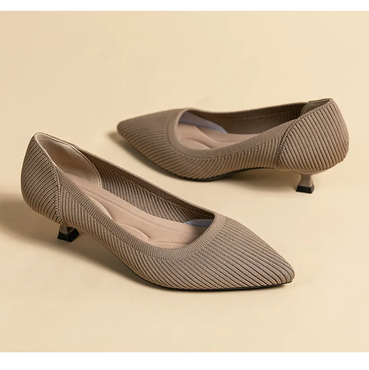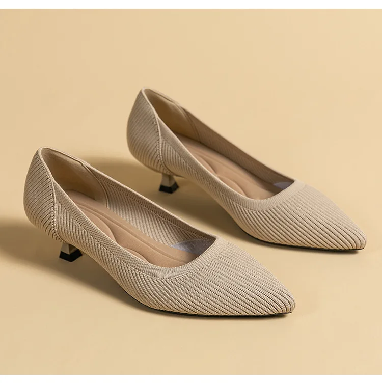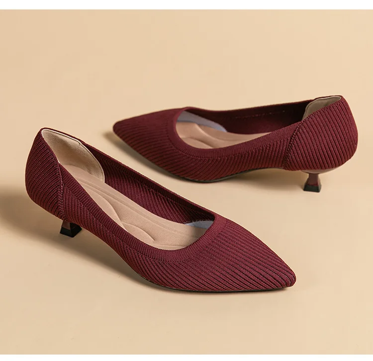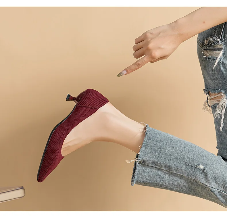 2023 Pointed Toe Solid Color Stretch Knitted Shoes Pumps Slip on Sole Low Heels Breathable Loafers Women Mesh Shallow Sock Shoes