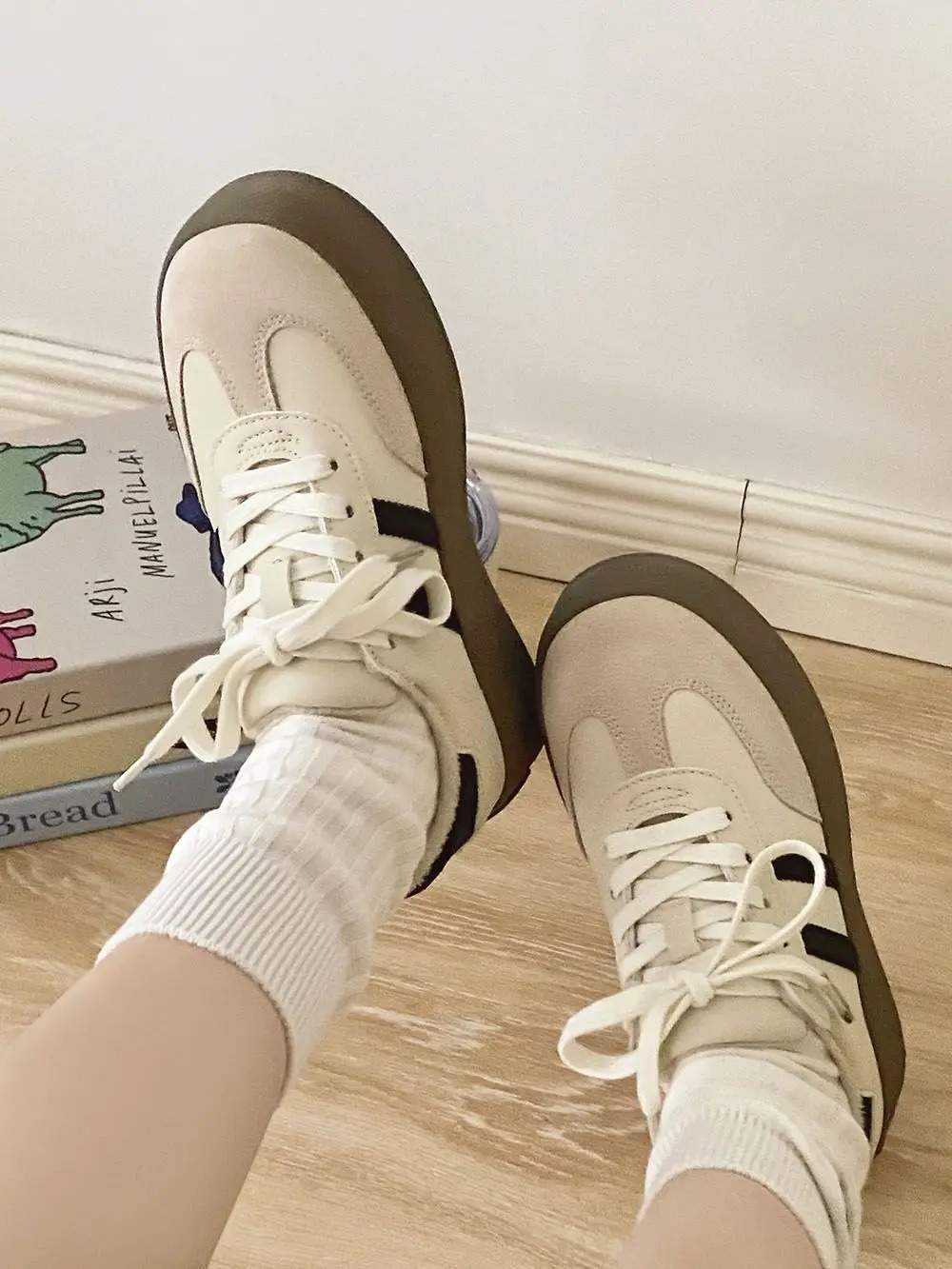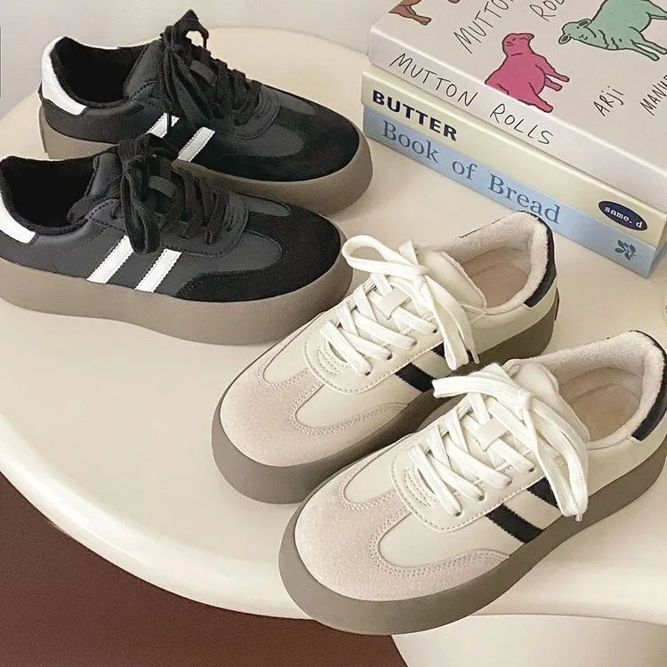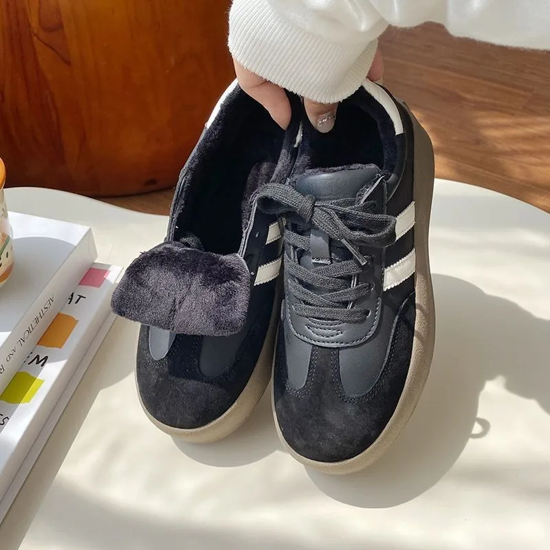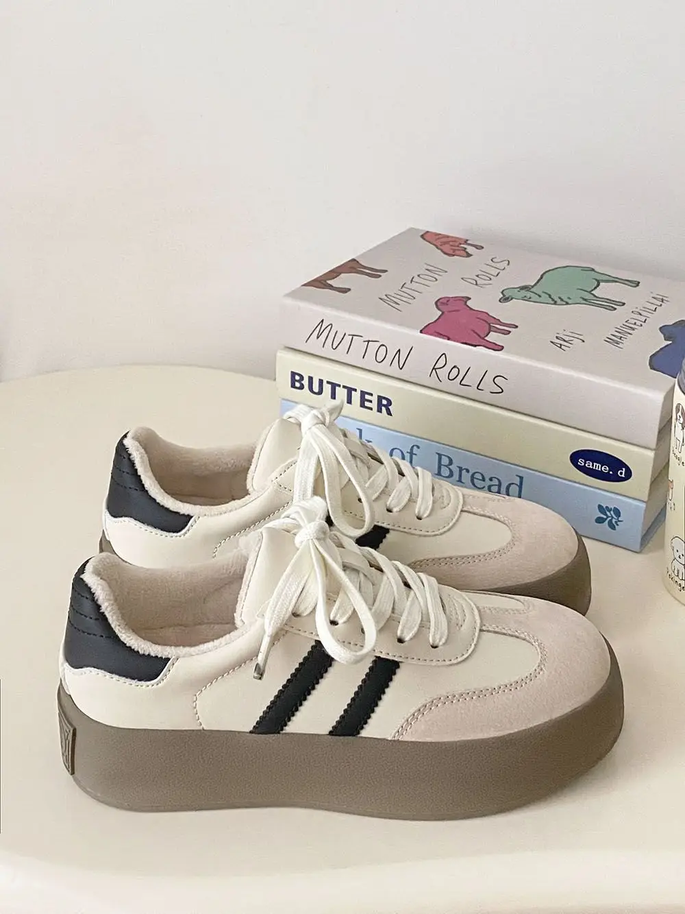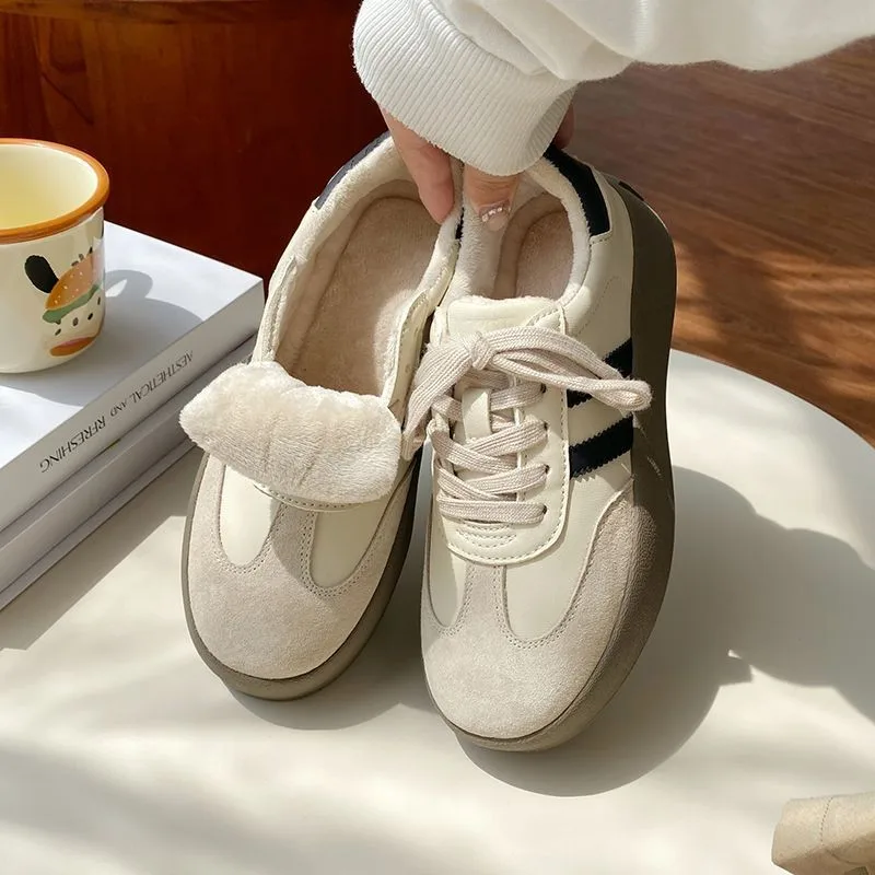 2023 Winter New Round Toe Leather Lace Up Color Matching Plush Thermal Insulation Versatile Casual Sports Shoes Women's Shoes