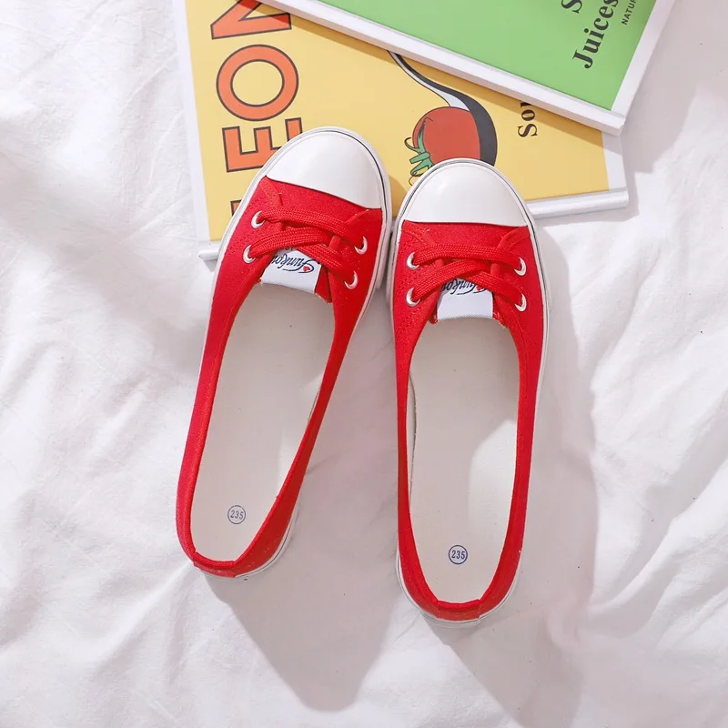 2023Women Casual Flats Lace up Shallow Shoes Autumn Fashion Comfortable Female Canvas Loafers Vulcanized Shoes Ladies Footwear