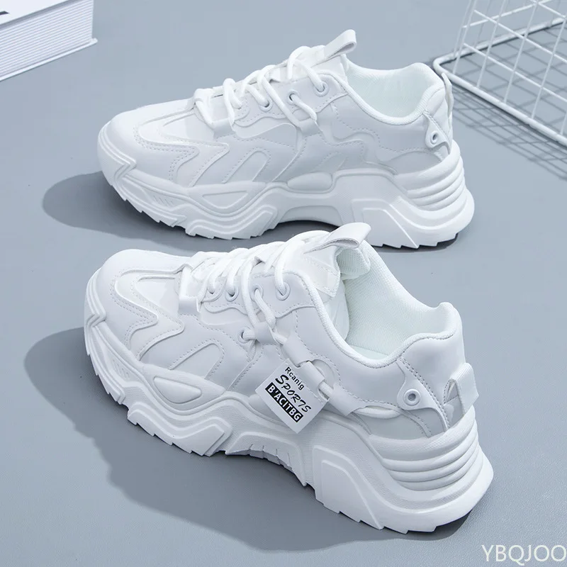2023Women Dad Chunky Sneakers Casual Vulcanized Shoes Woman High Platform Winter Sneakers Femme Lace Up White Basket Sneakers