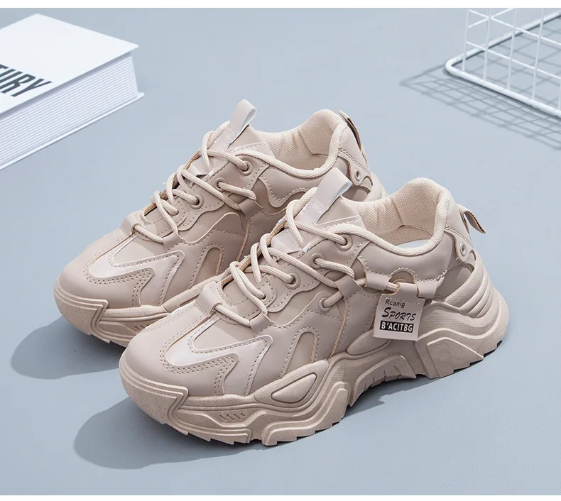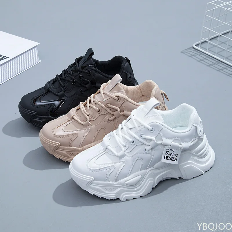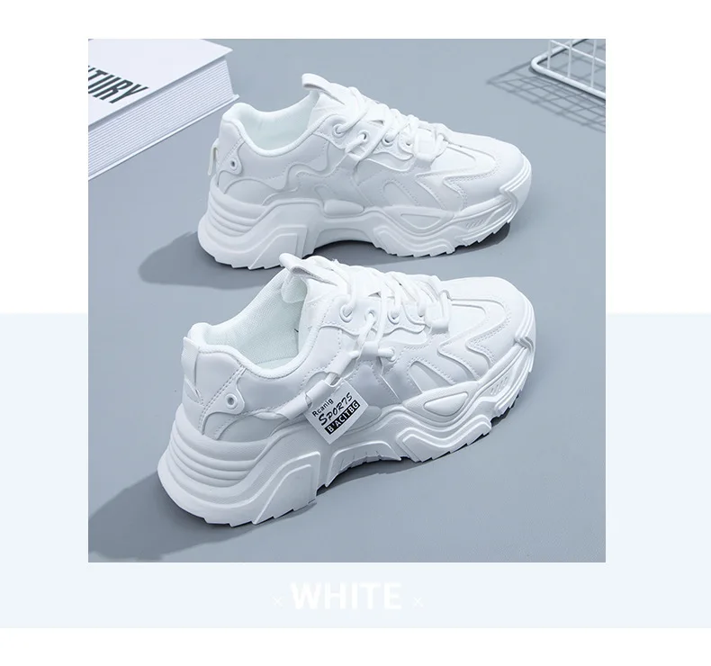 2023Women Dad Chunky Sneakers Casual Vulcanized Shoes Woman High Platform Winter Sneakers Femme Lace Up White Basket Sneakers