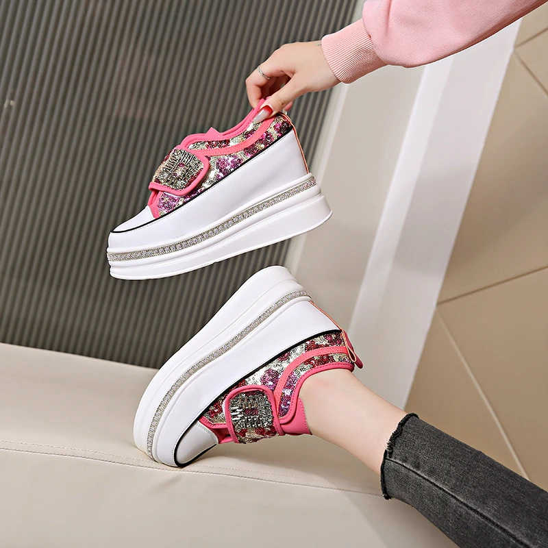 2024 Brand Shoes for Women Sequins Women's Vulcanize Shoes Fashion Crystal Ladies Casual Shoes New Round Head Platform Sneakers