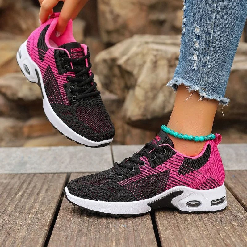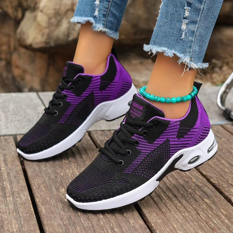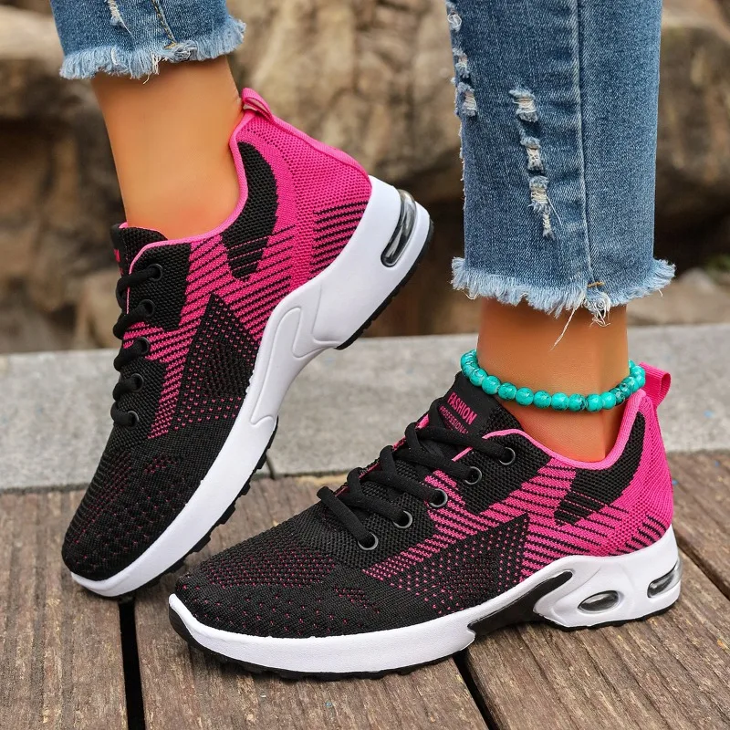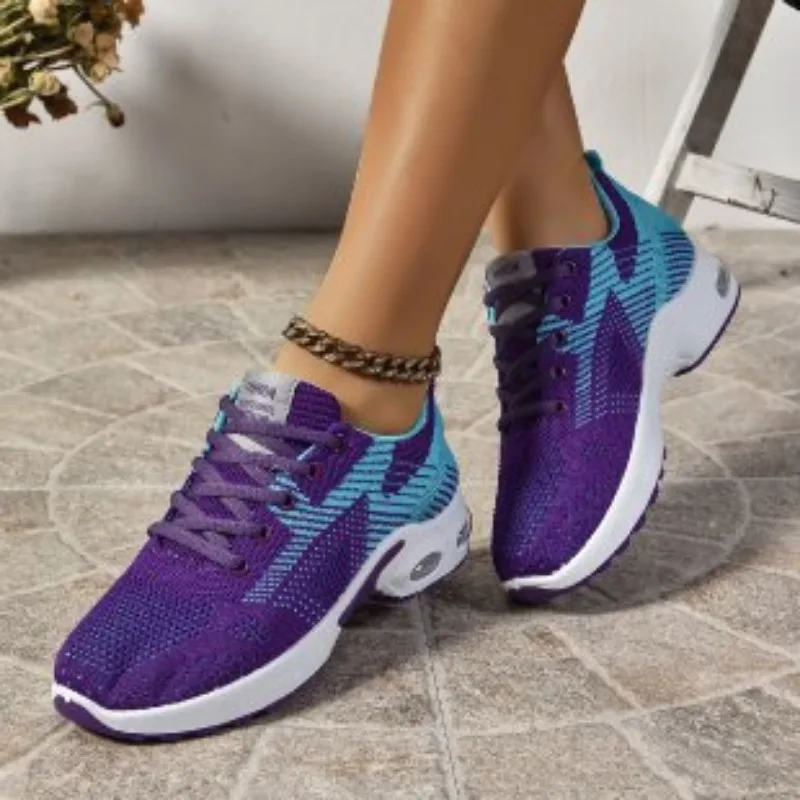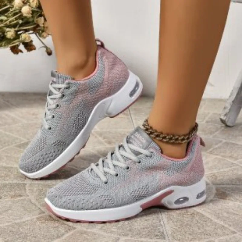2024 Brand Women's Shoes Lace-up Women's Vulcanize Shoes Fashion Color Matching Ladies Casual Shoes New Plus Size Mesh Sneakers