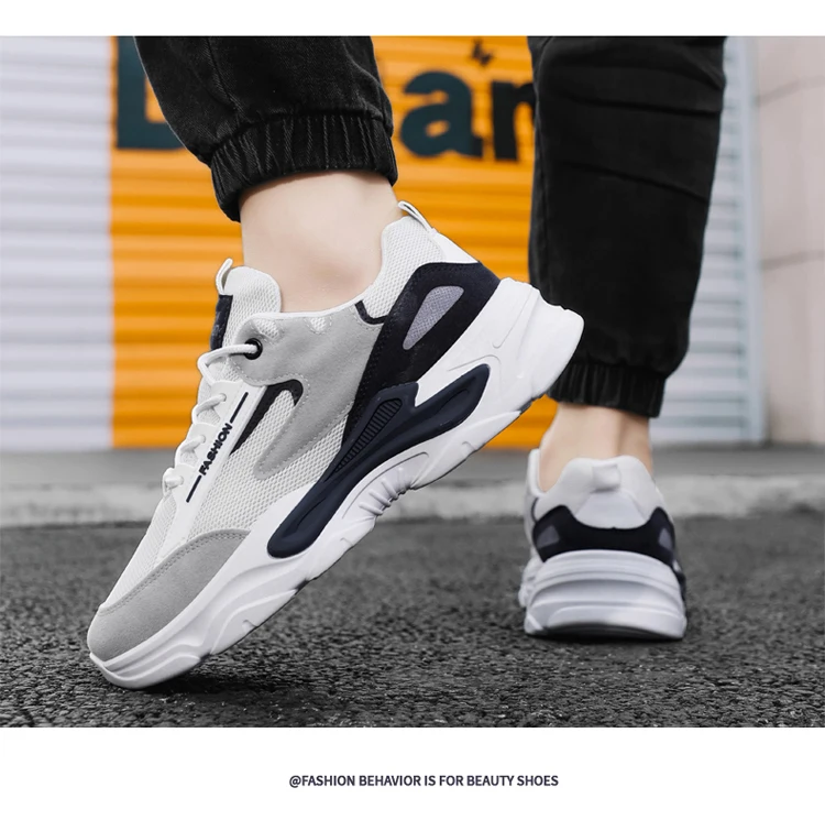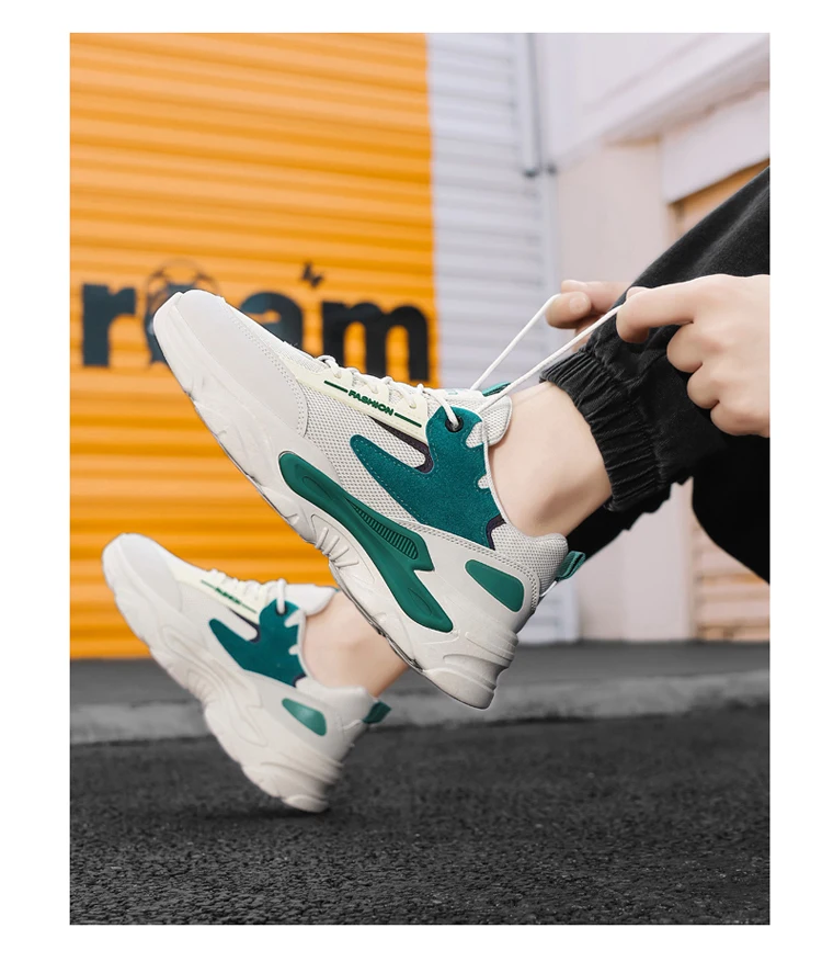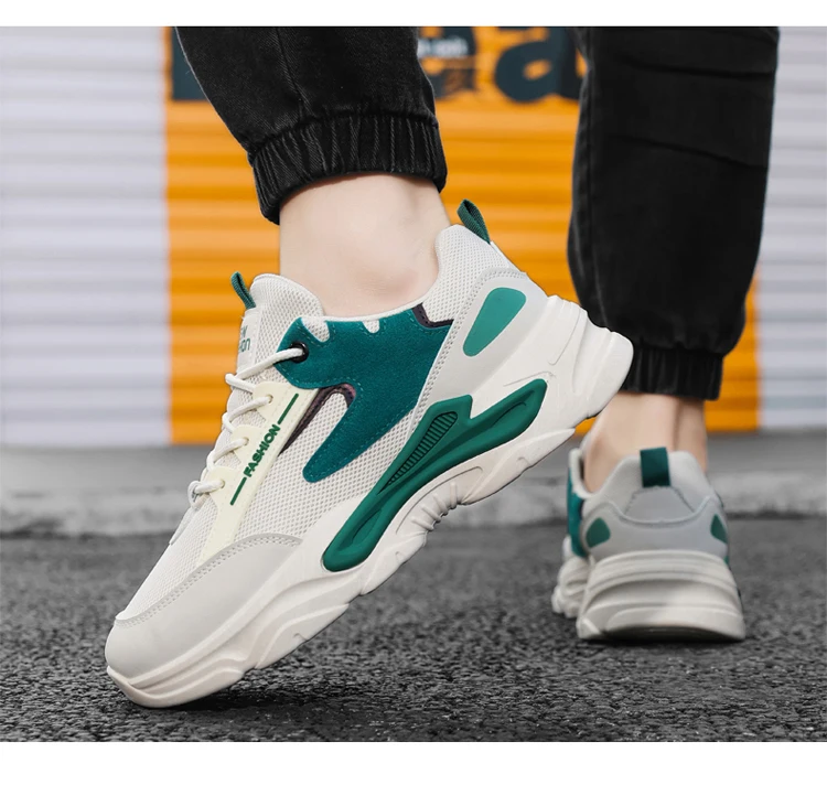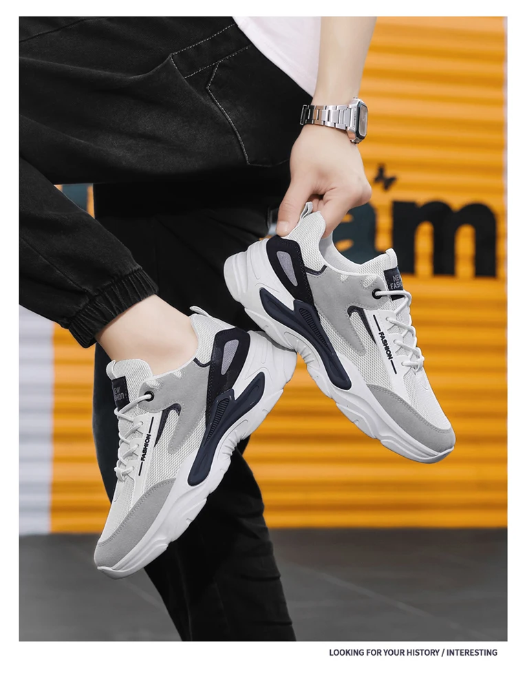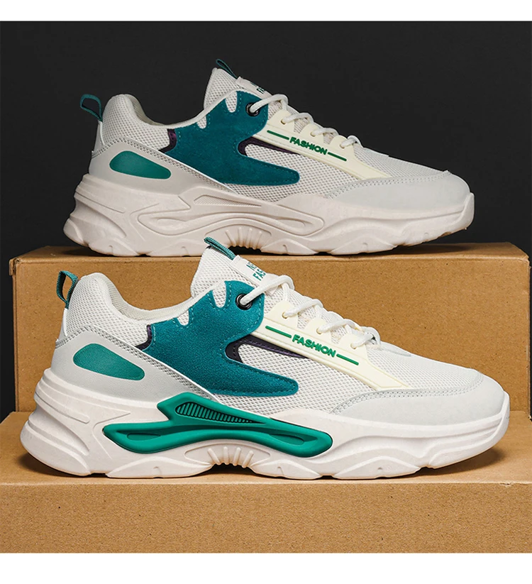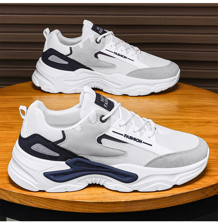 2024 Men's Shoes Mesh Breathable Sports Shoes Trend Lace Up Board Sneakers Platform Casual Jogging Dad Shoes Zapatillas Hombre