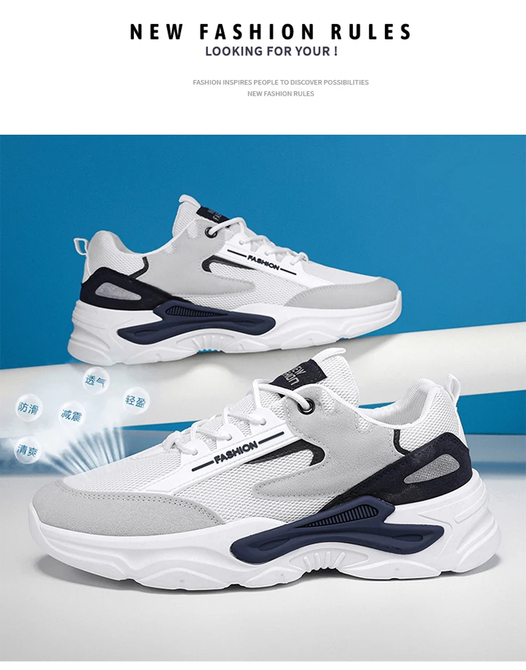 2024 Men's Shoes Mesh Breathable Sports Shoes Trend Lace Up Board Sneakers Platform Casual Jogging Dad Shoes Zapatillas Hombre