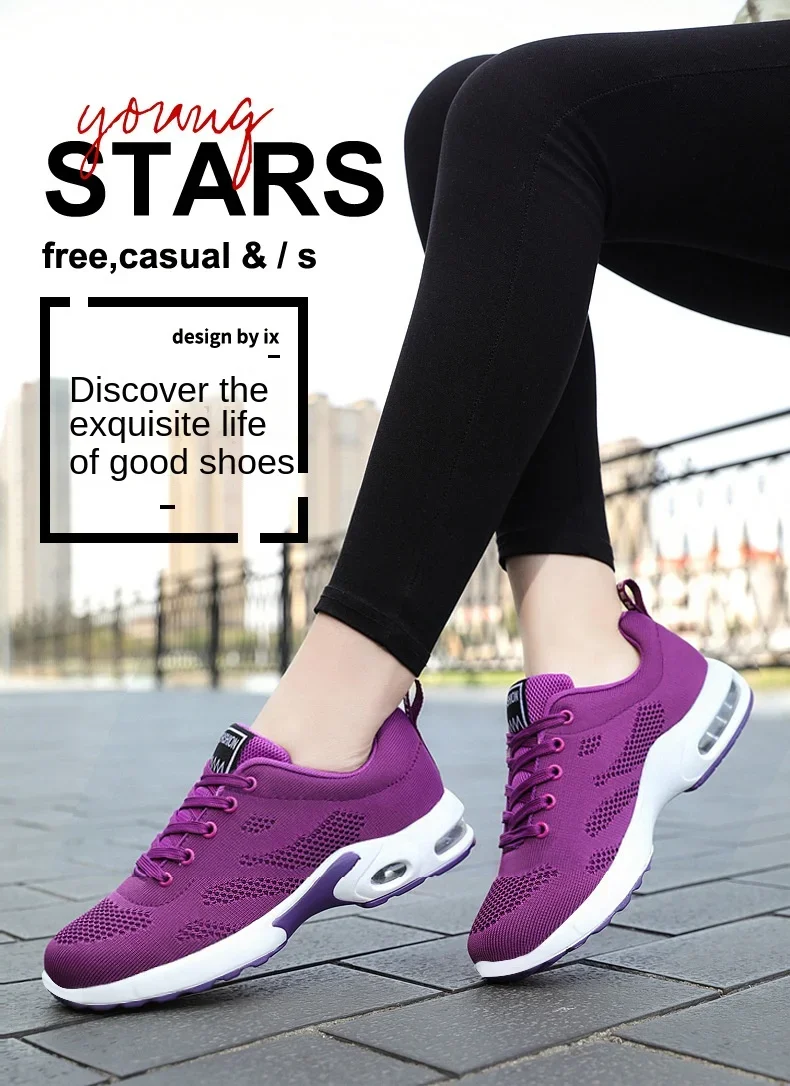2024 New Air Cushion Women's Shoes Korean Fashion Trend Mesh Shoes Soft Sole Breathable Sports Shoes Women's Edition