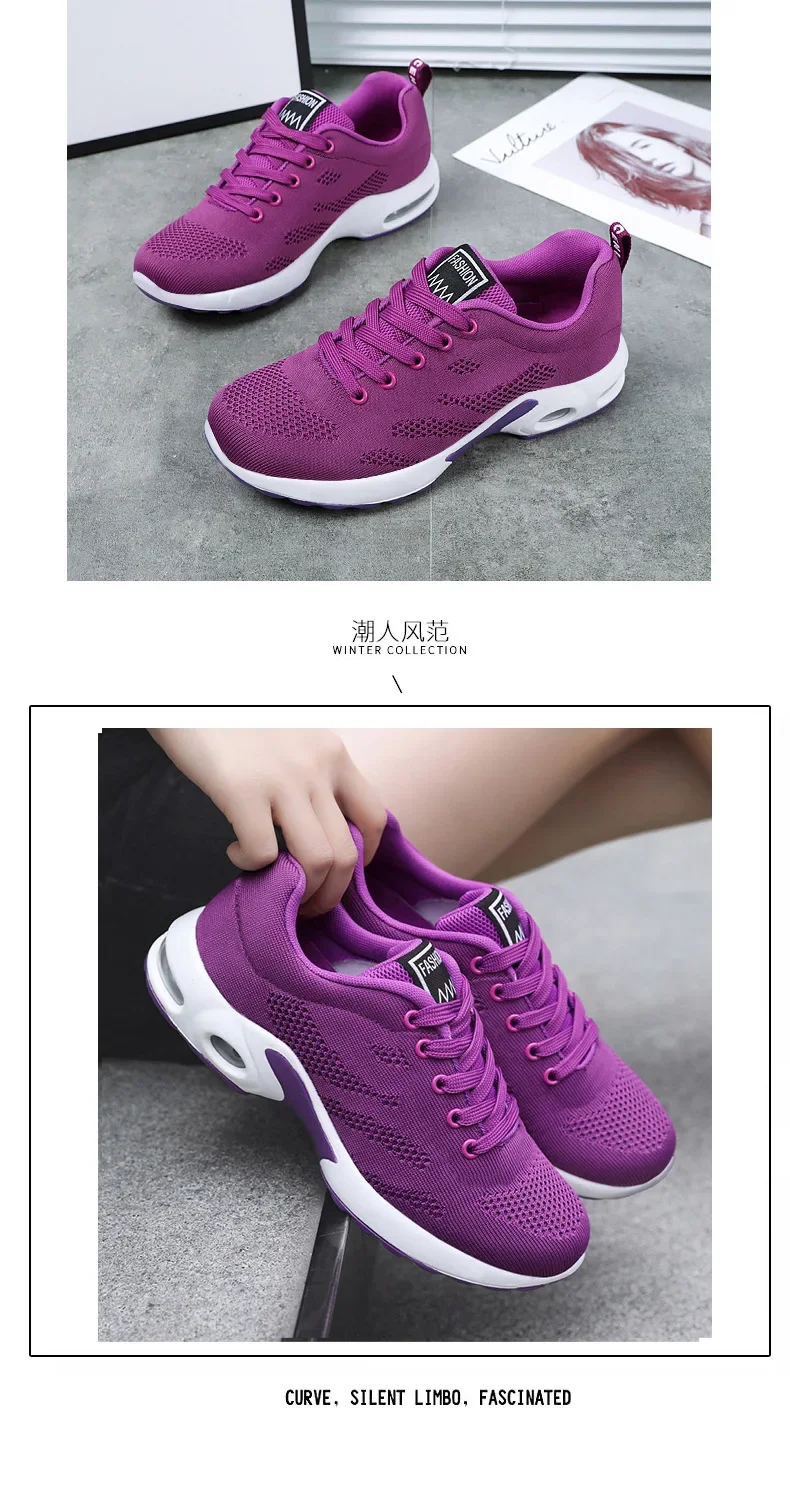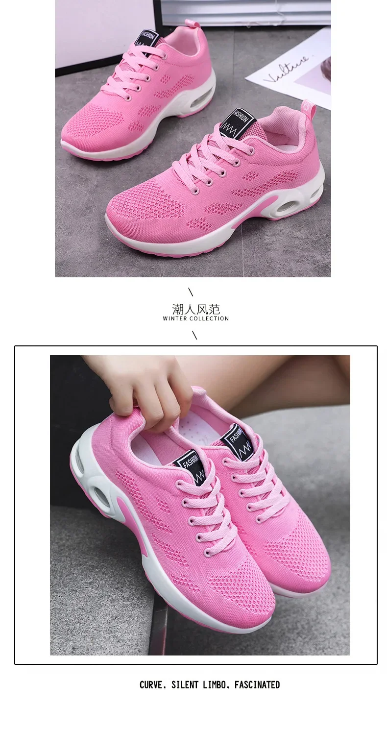 2024 New Air Cushion Women's Shoes Korean Fashion Trend Mesh Shoes Soft Sole Breathable Sports Shoes Women's Edition
