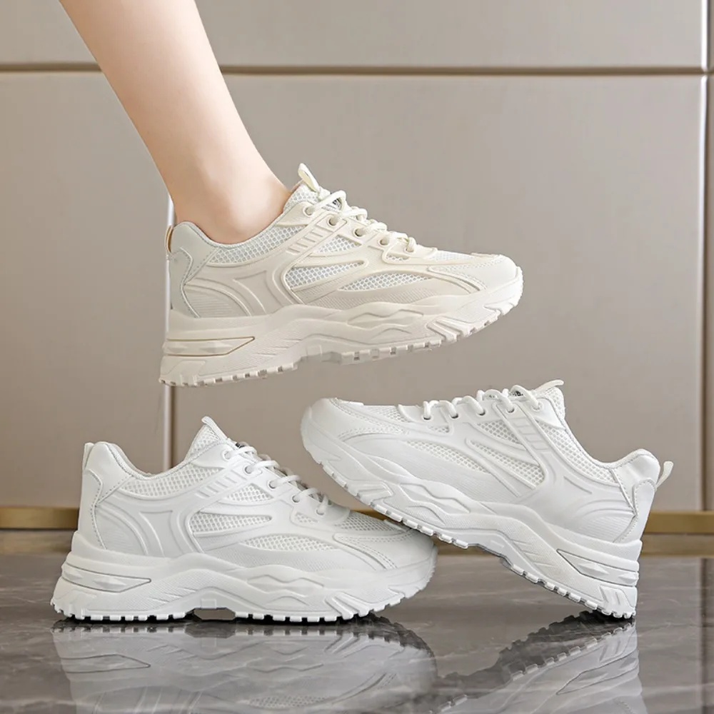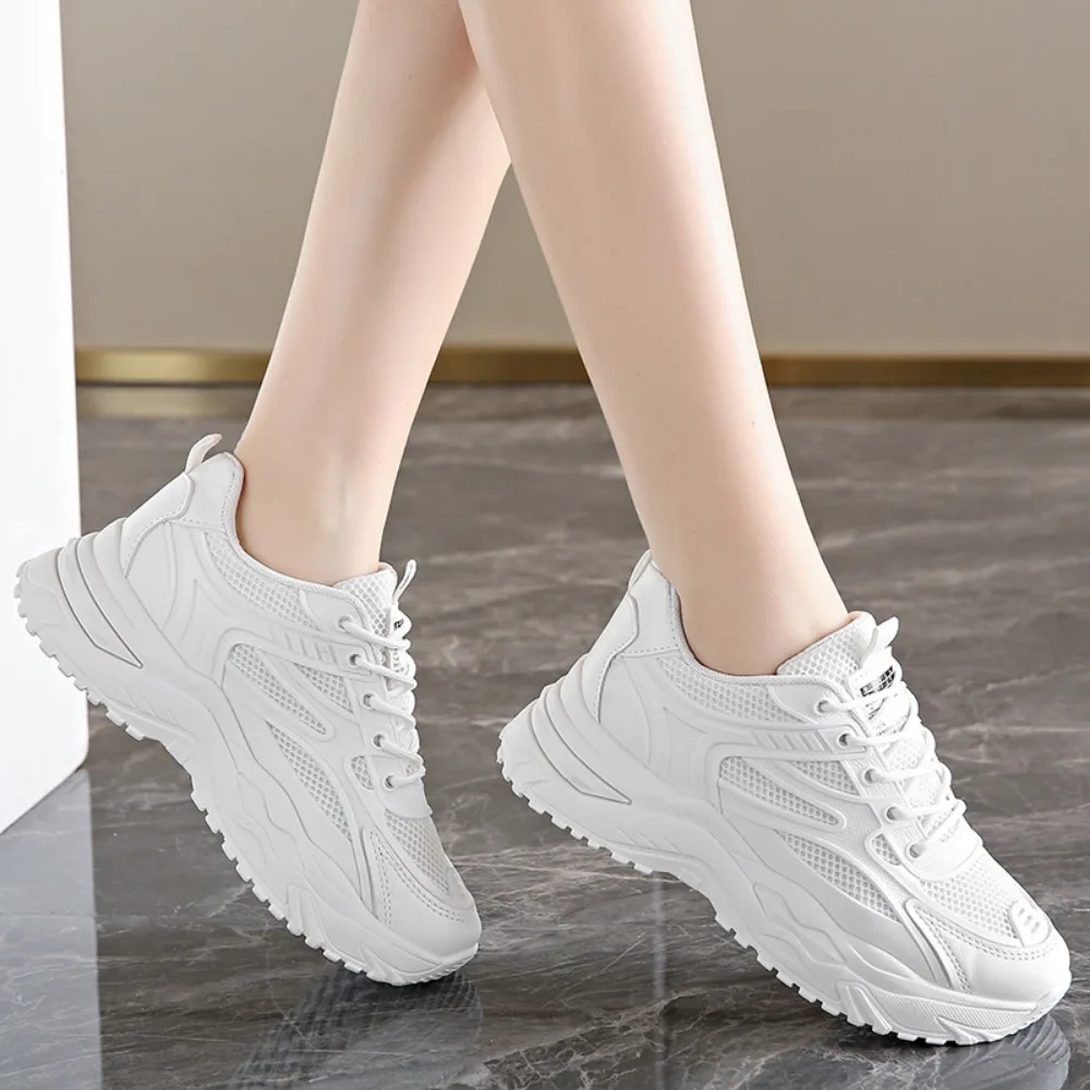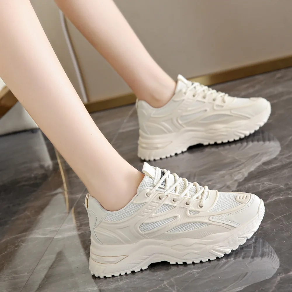 2024 New Casual Round Toe Cross Strap Mesh Women Shoes Summer Fashion Increased Breathable Comfortable Women Sneakers