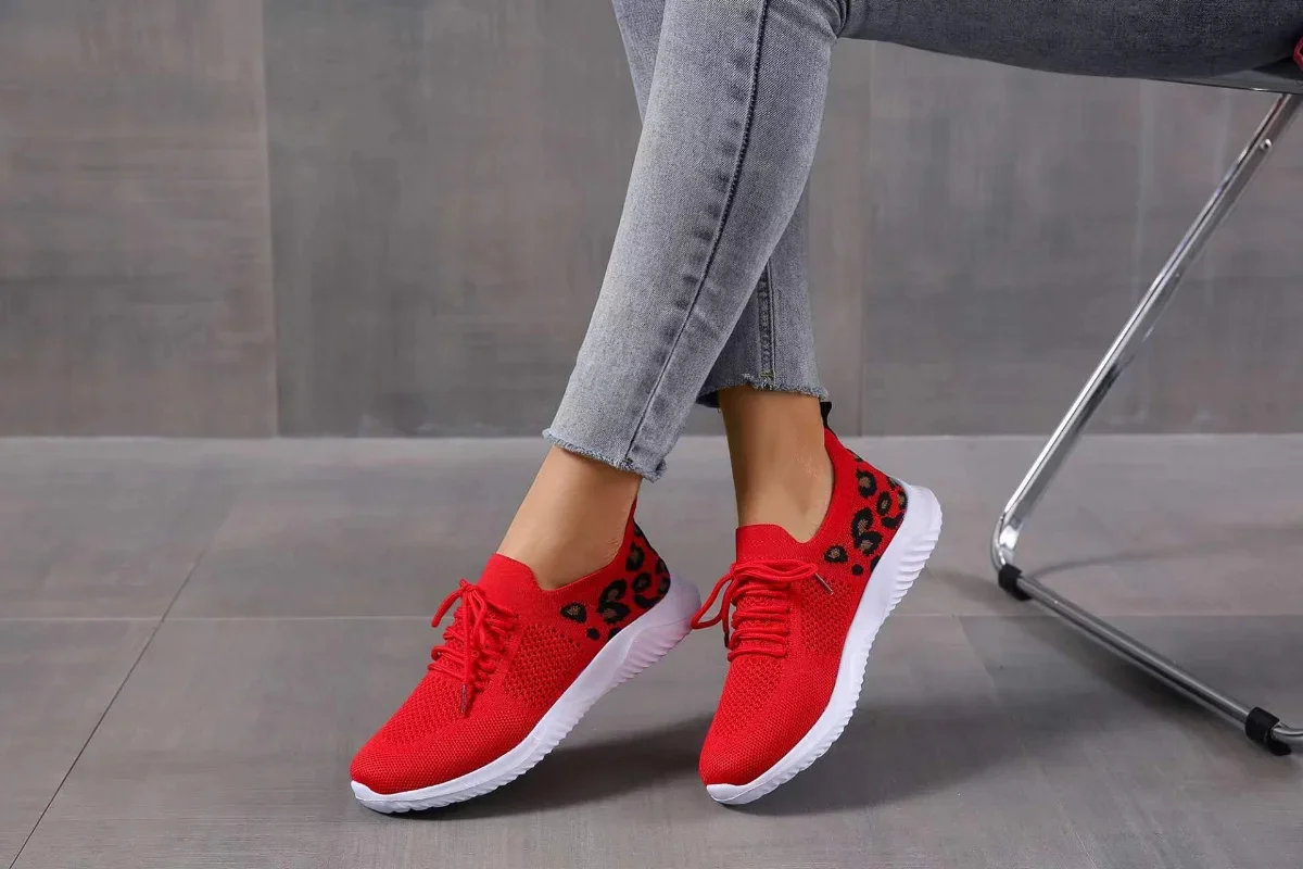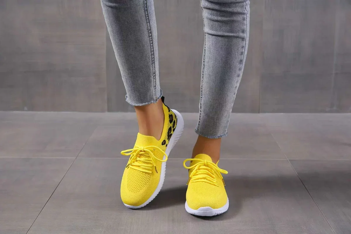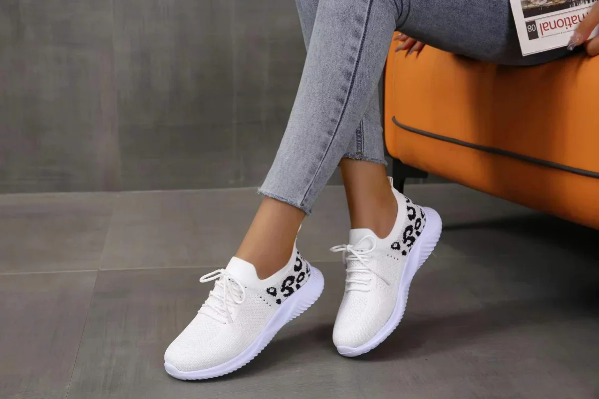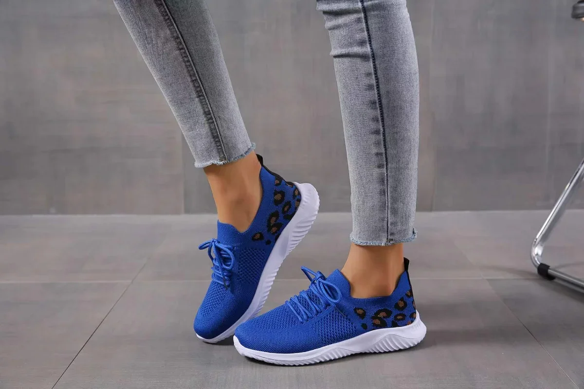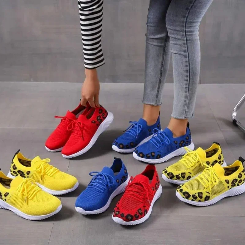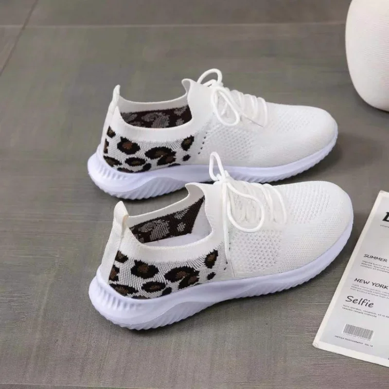 2024 New Ladies Shoes Lace Up Women's Vulcanize Shoes Fashion Leopard Print Women's Casual Shoes Round Head Mesh Sneakerzapatoss