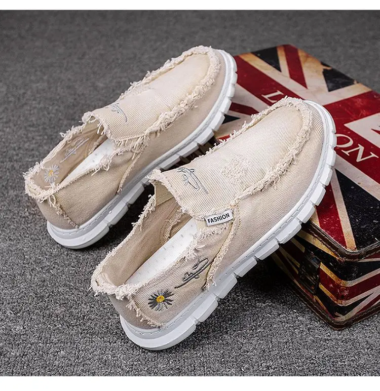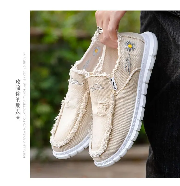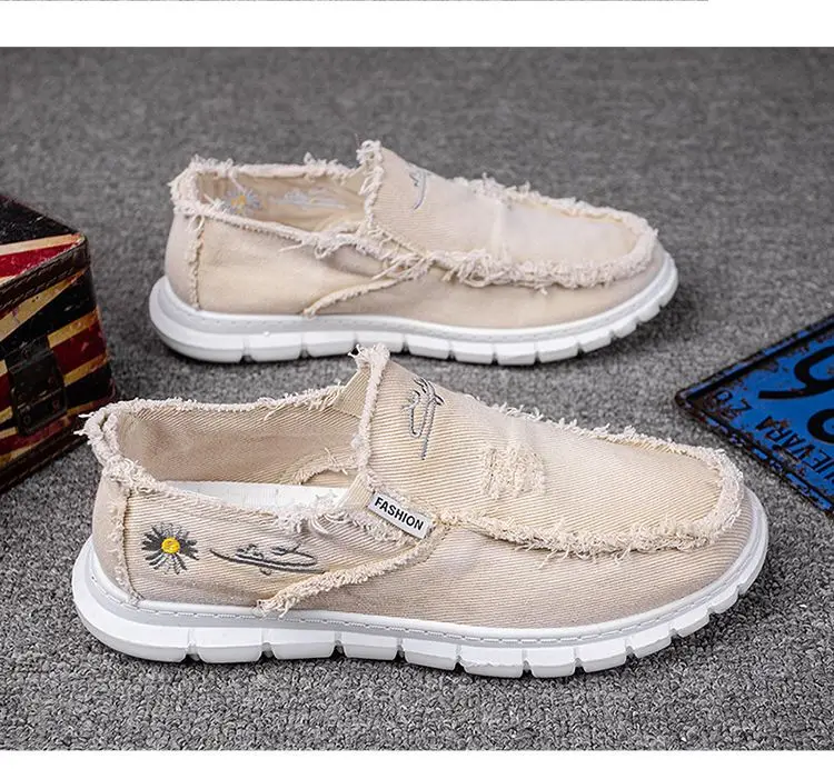 2024 new Men's shoes summer fashion breathable canvas casual shoes soft soled anti slip driving shoes Loafers shoes