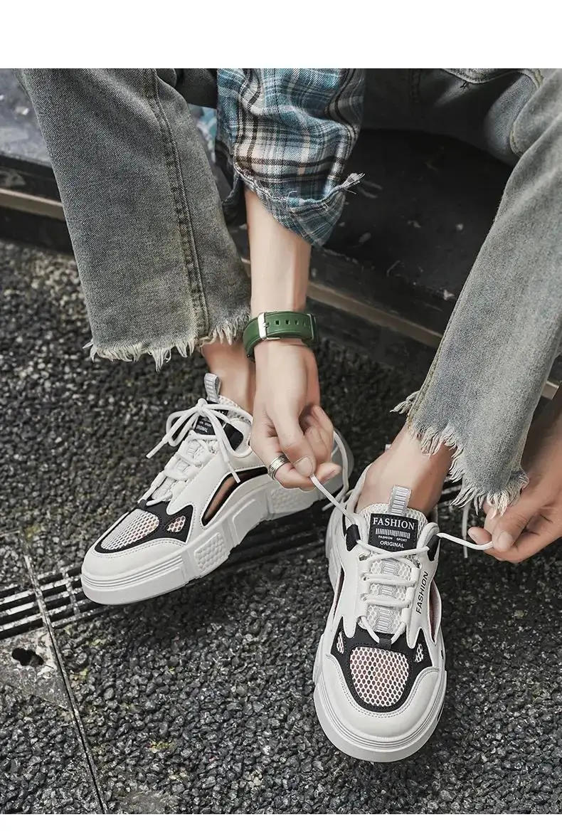 2024 New Men's Summer Mesh Hollow Sneaker Shoes Free Shipping Soft Sole Non Slip Breathable Lace Up Casual Board Shoes