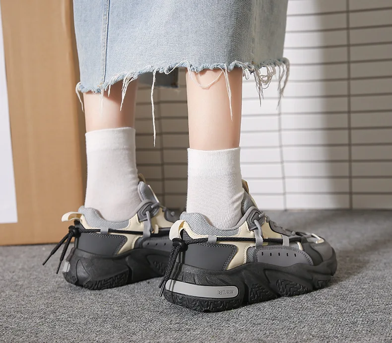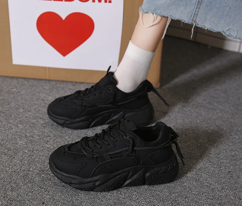 2024 New Women Chunky Sneakers Girl Student Mesh Patchwork Casual Sport Platform Shoes Thick-soled Athletic Shoes