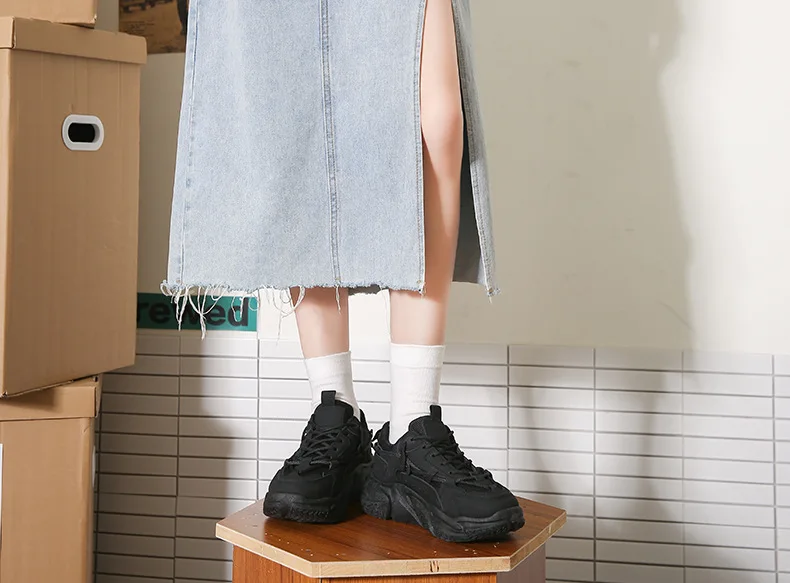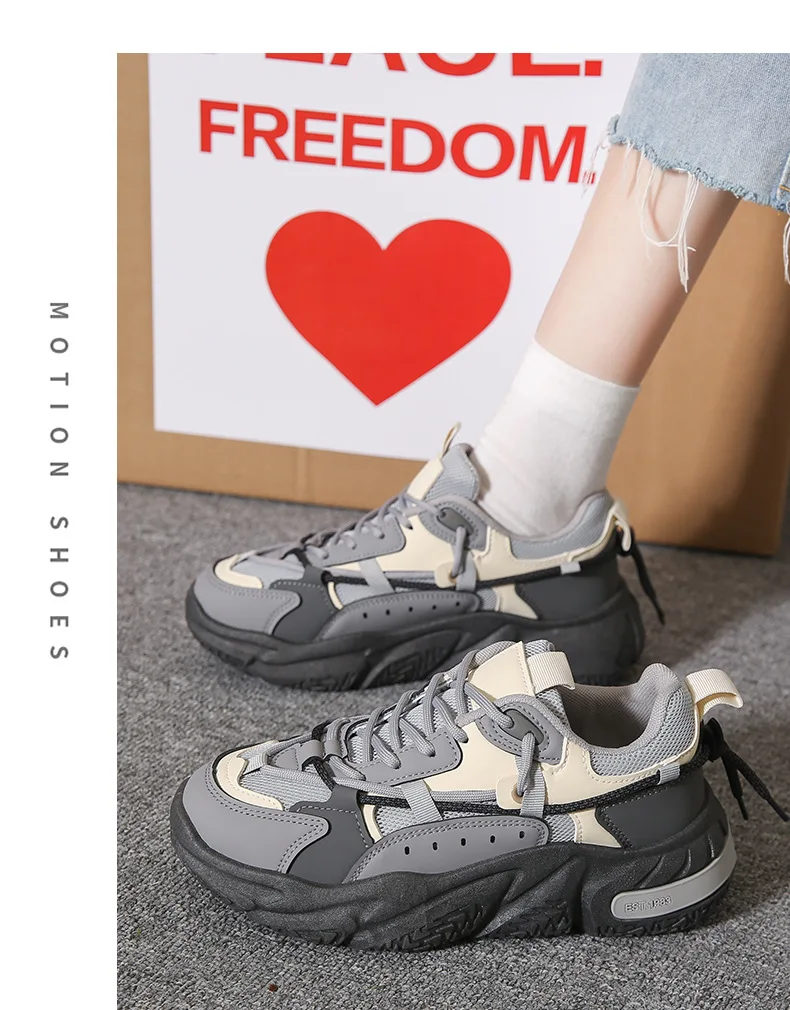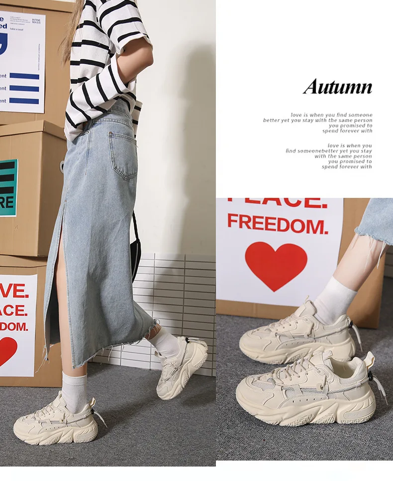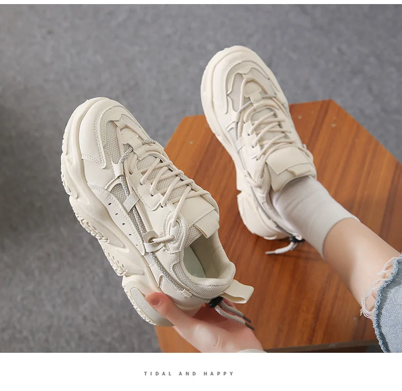 2024 New Women Chunky Sneakers Girl Student Mesh Patchwork Casual Sport Platform Shoes Thick-soled Athletic Shoes