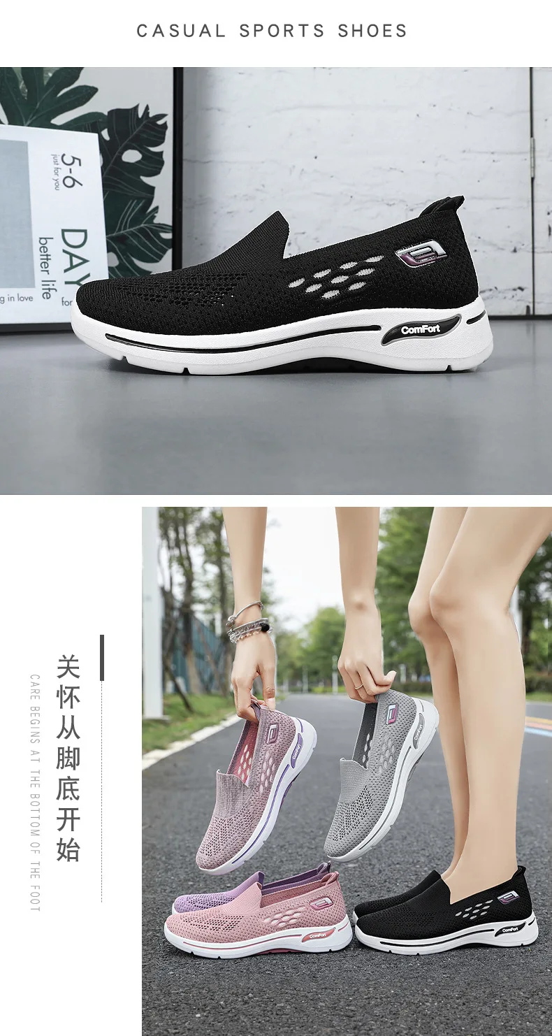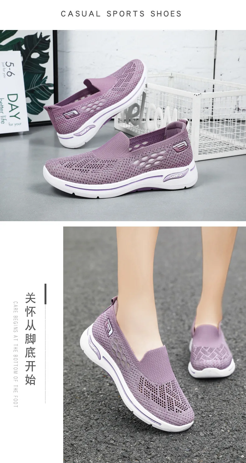 2024 Spring New Mesh Women's Running Shoes Breathable Casual Single Shoes Old Beijing Cloth Shoes Mainland China
