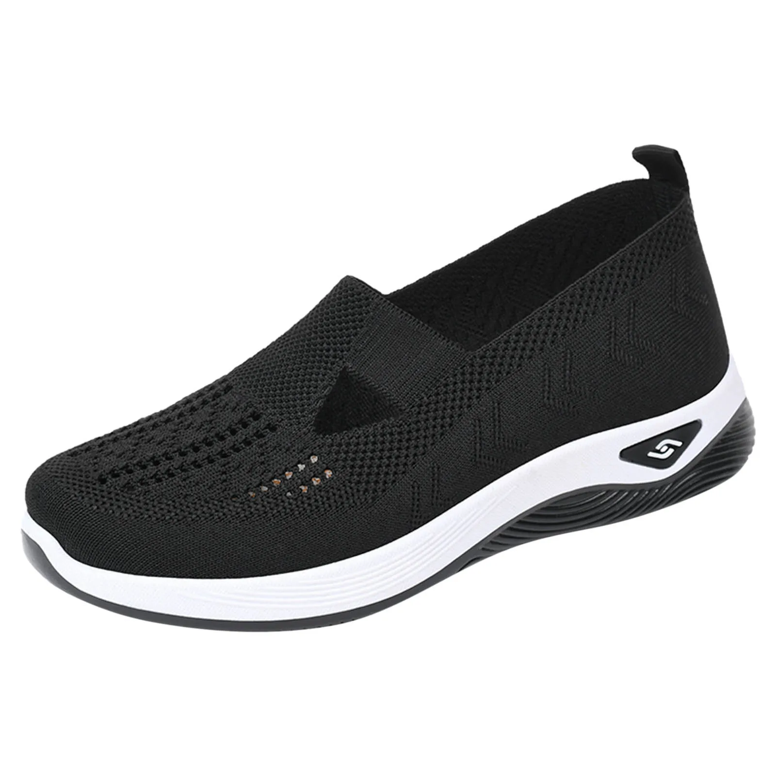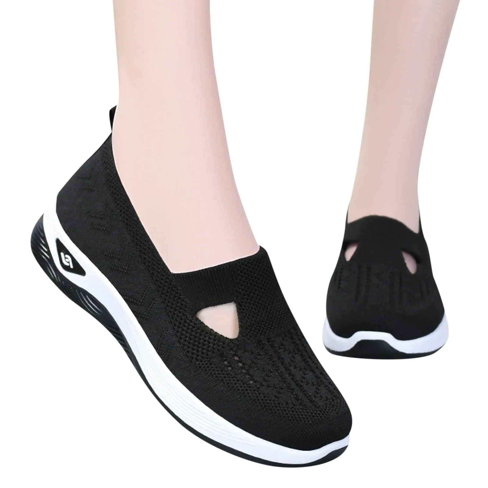 Fashion Summer Women Sports Shoes Flat Bottom Non Slip Mesh Hollow Upper Breathable Soft Slip On Casual Style