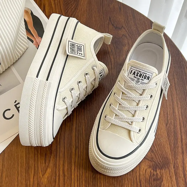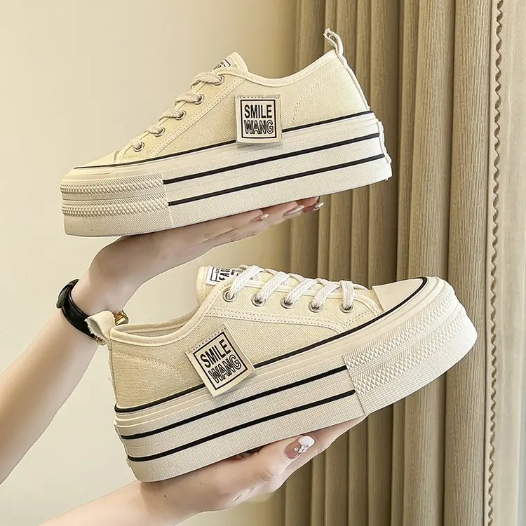 2024 Women's Casual Sneakers White Lace-Up canvas Shoes Woman Lightweight jogging Shoes platform Female sneakers tenis feminino