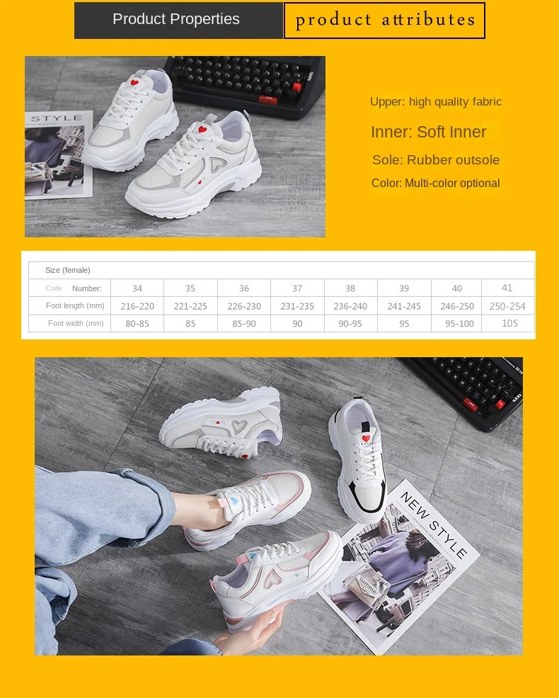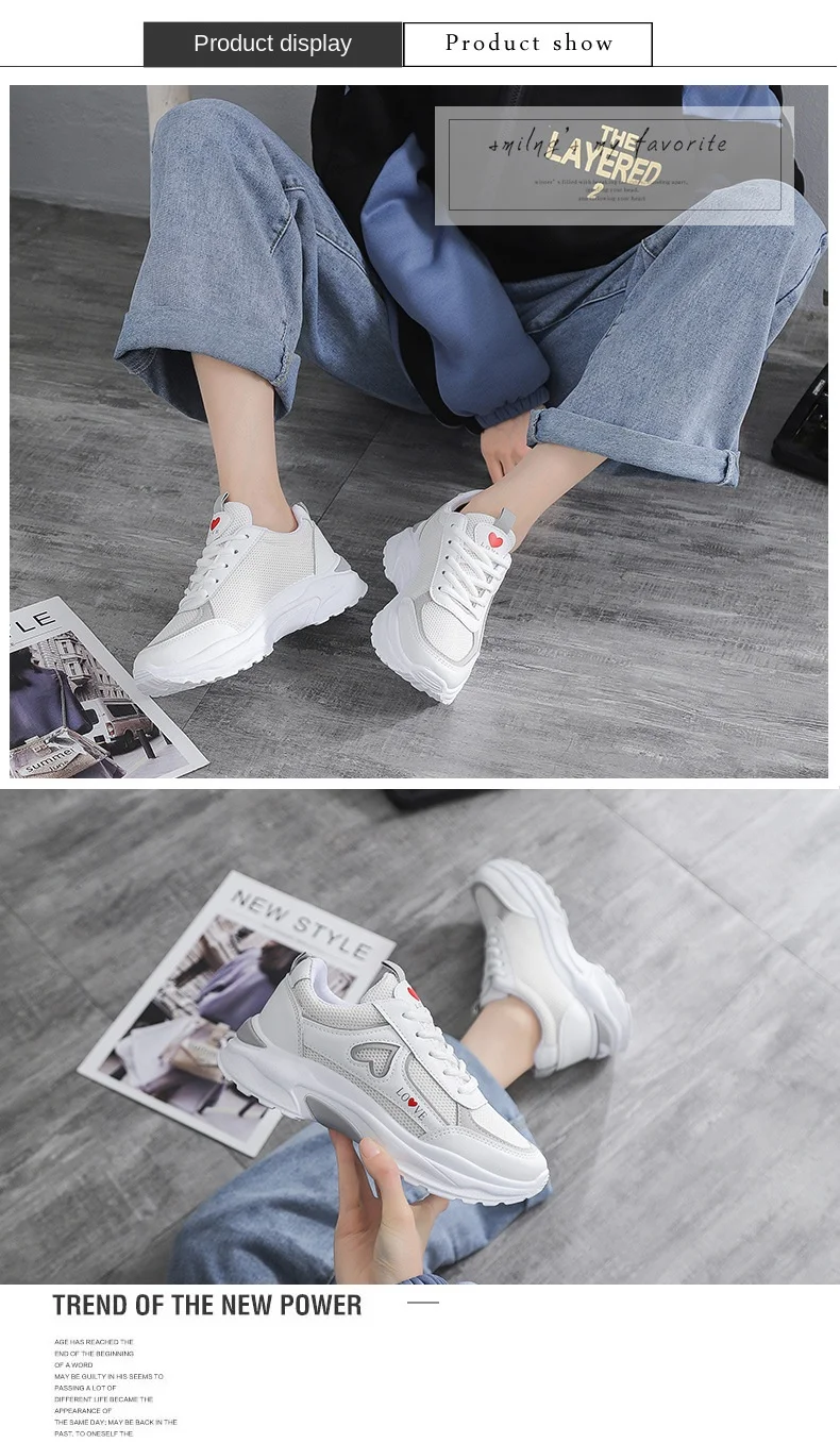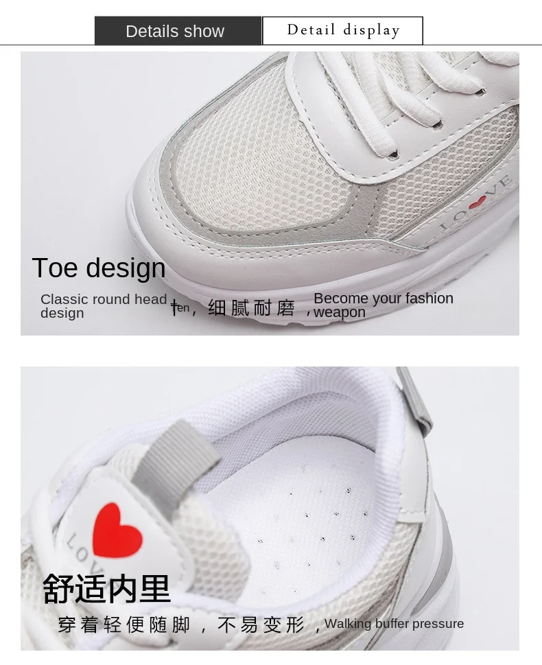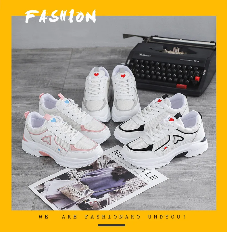 2024 women's heart-shaped casual sports shoes women's walking sports shoes breathable white casual sports shoes
