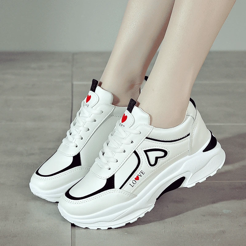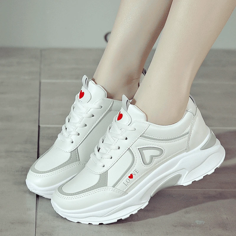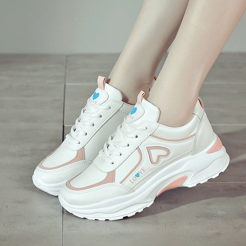 2024 women's heart-shaped casual sports shoes women's walking sports shoes breathable white casual sports shoes