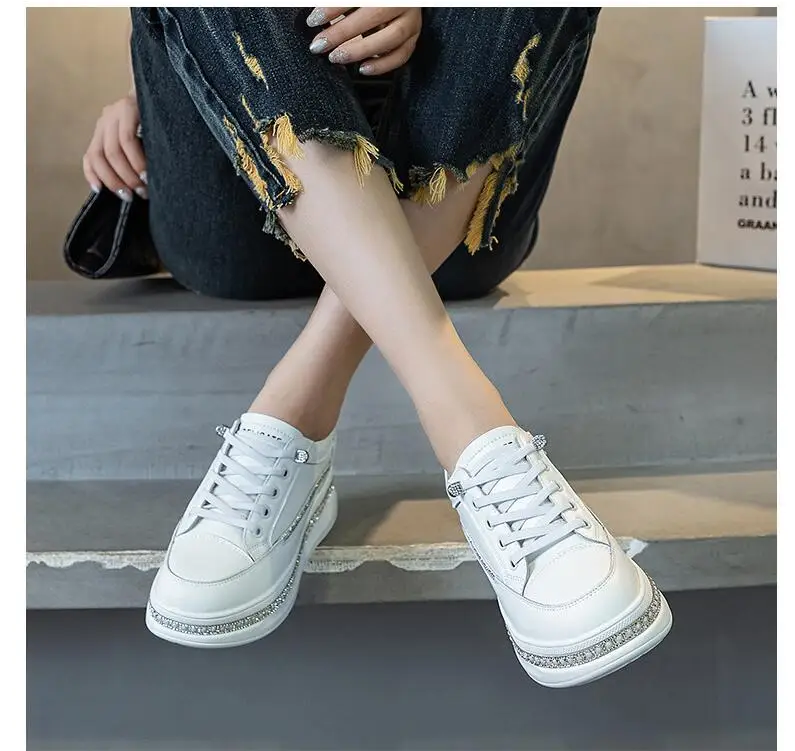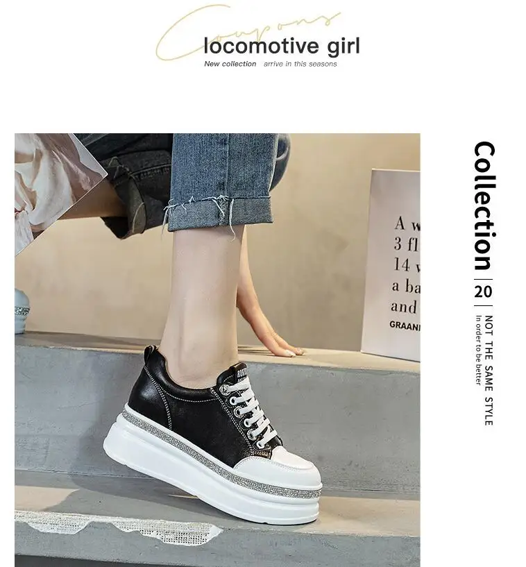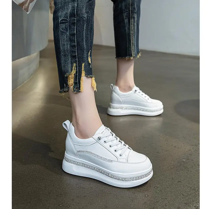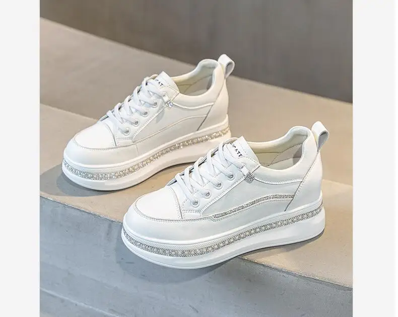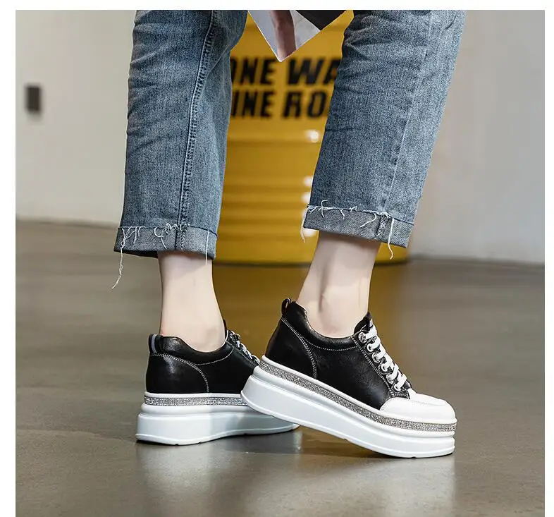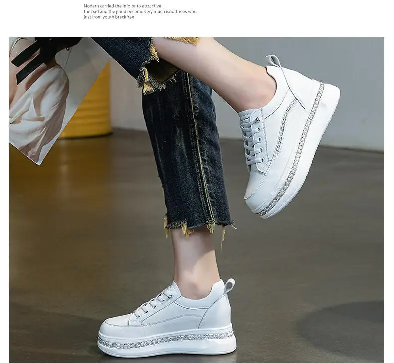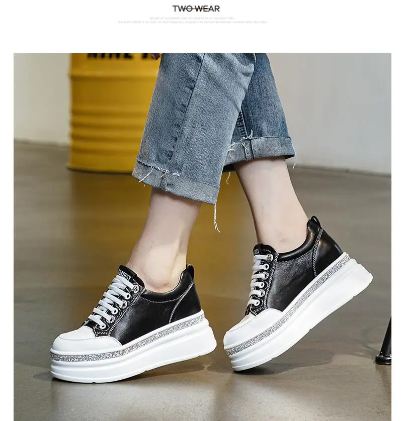 7cm Genuine Leather Vulcanize Summer Vulcanize Women Chunky Sneaker Loafer High Brand Comfy Spring Autumn Platform Bling Shoes
