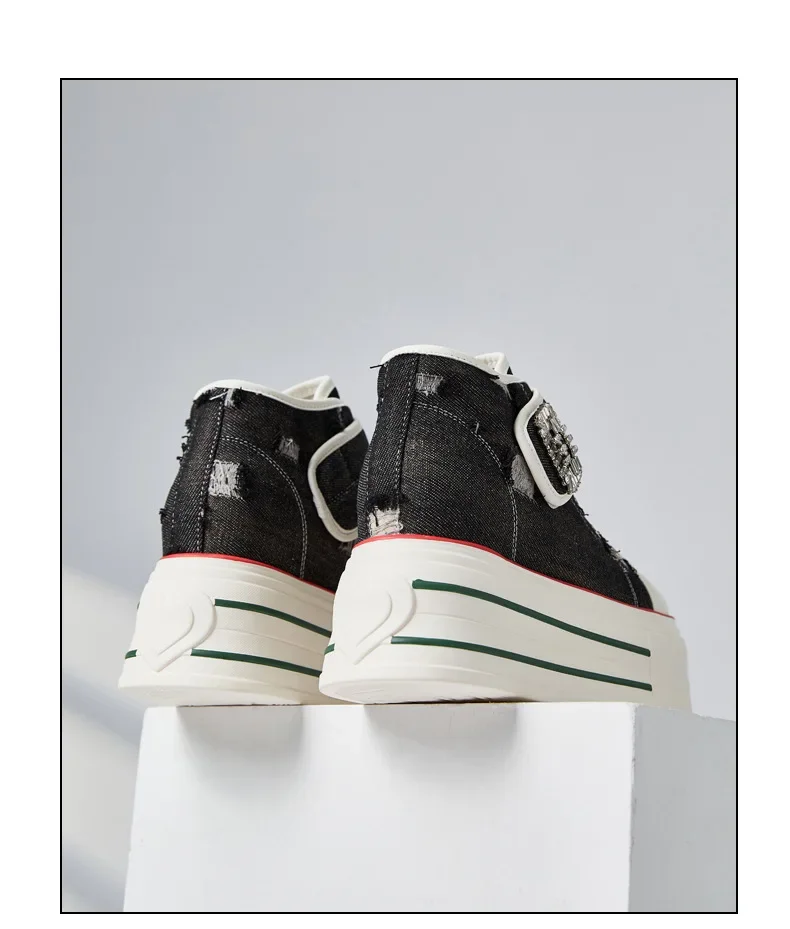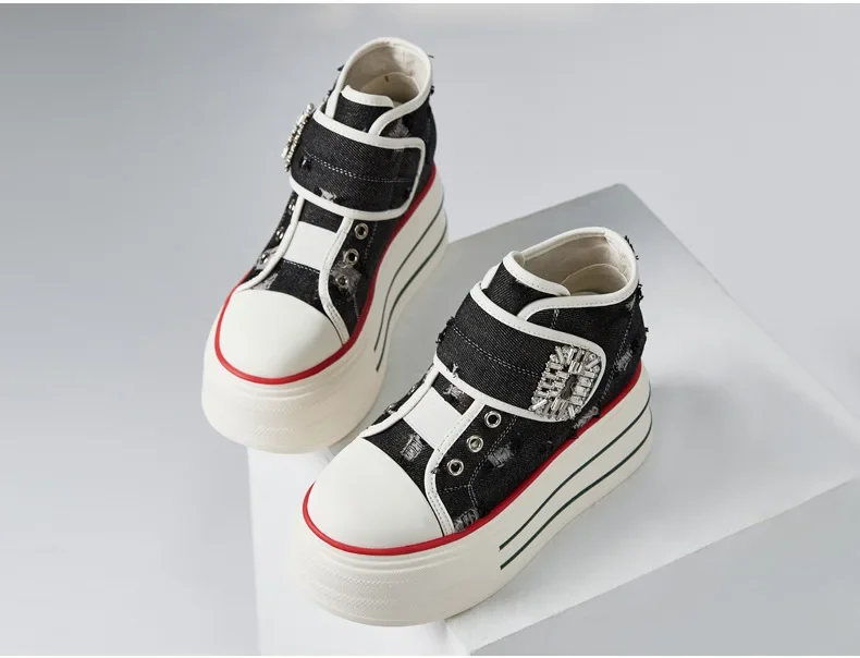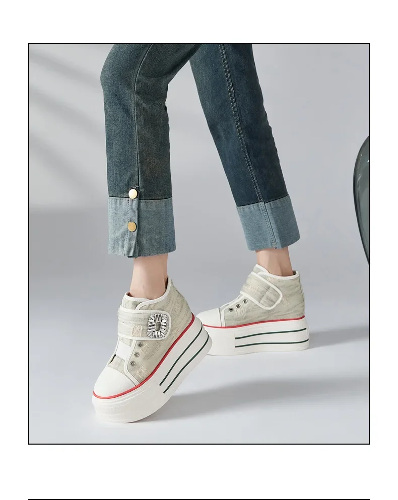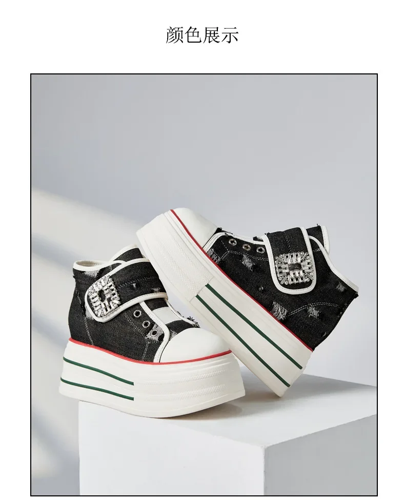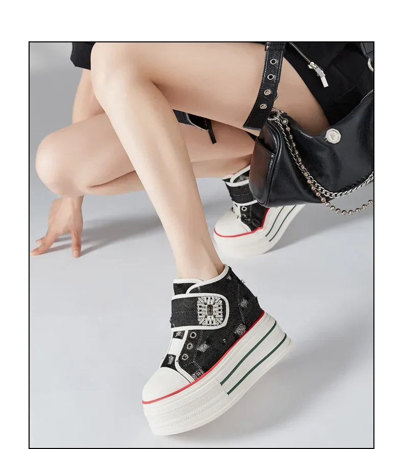 8.5cm Denim Canvas Crystal Women 2024 Fashion Hook&Loop Spring Ankle Boots Platform Wedge Lady Autumn Fashion High Brand Shoes