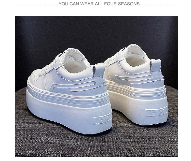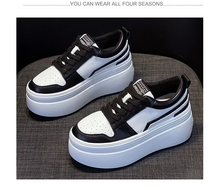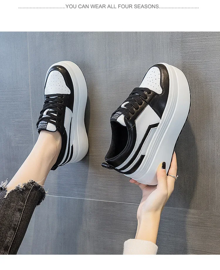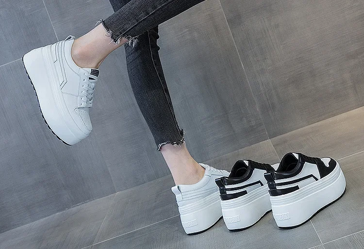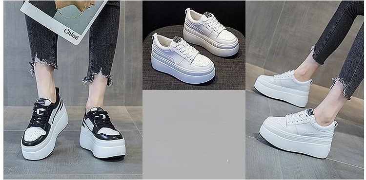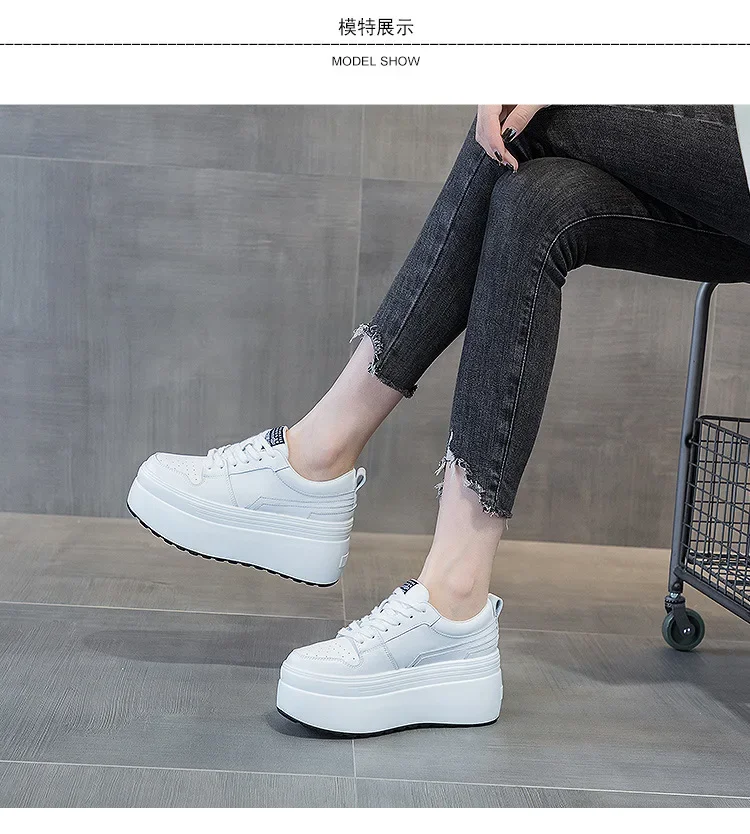 8cm Cow Genuine Leather Autumn Spring Platform Wedge High Fashion Breathable Sneakers Chunky Casual Women Moccasins Shoes
