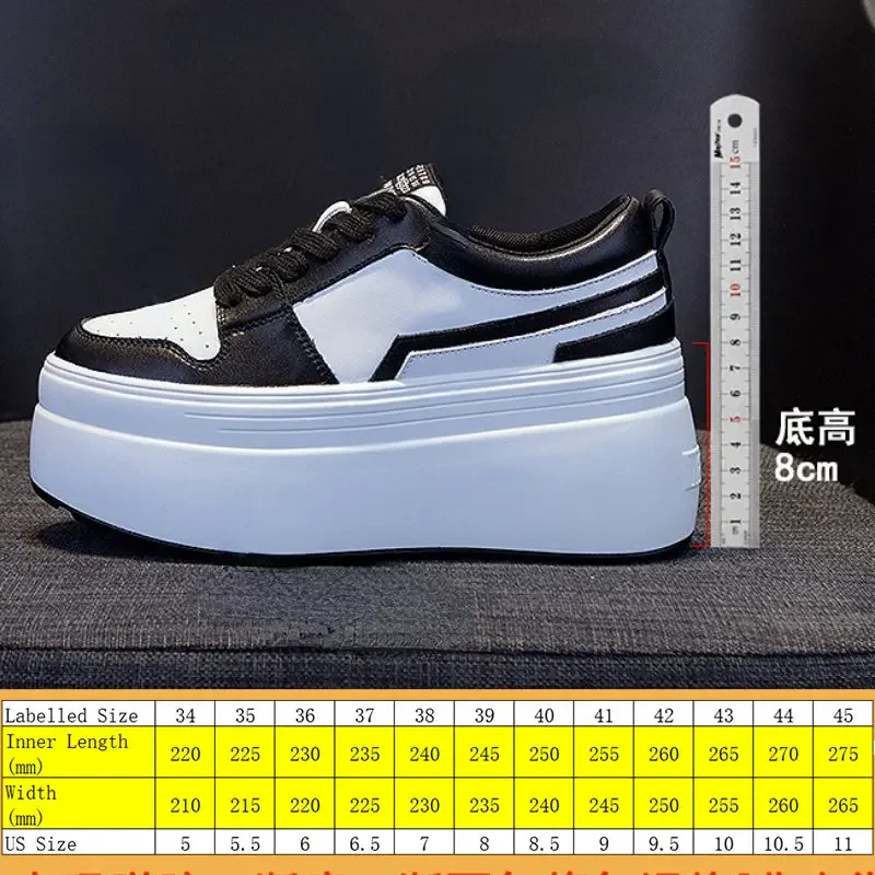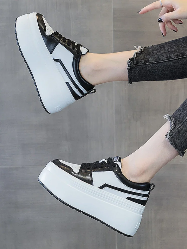 8cm Cow Genuine Leather Autumn Spring Platform Wedge High Fashion Breathable Sneakers Chunky Casual Women Moccasins Shoes