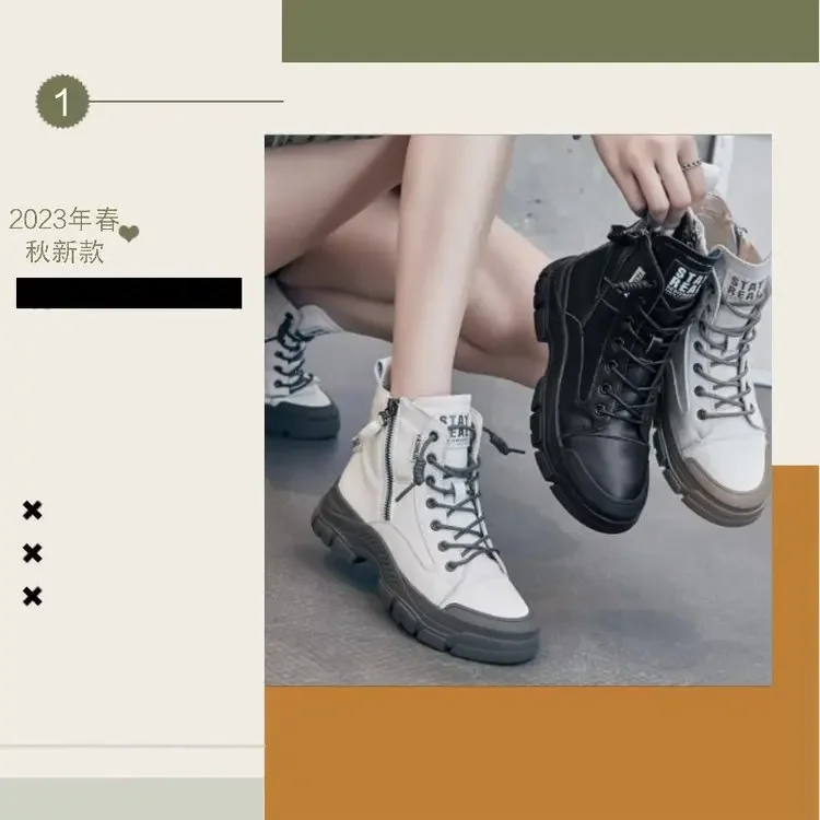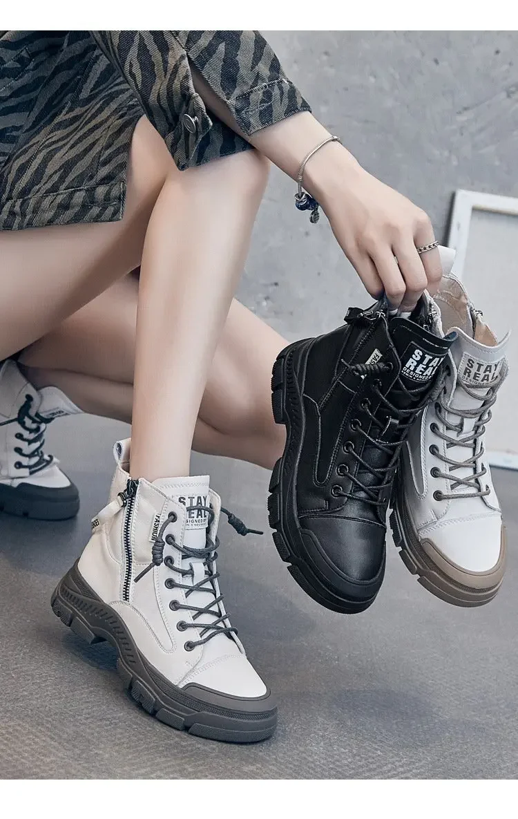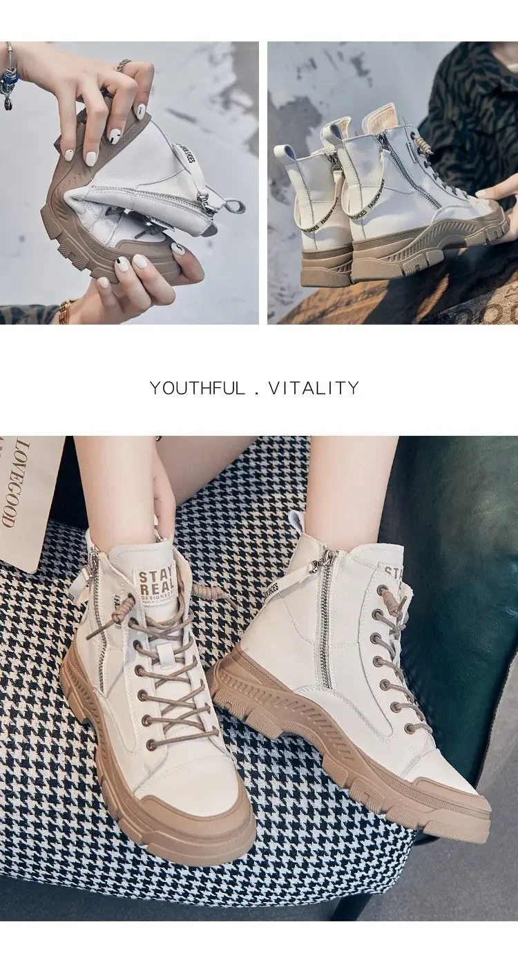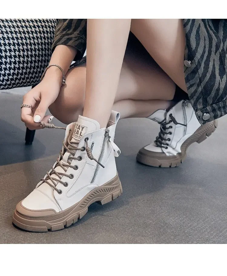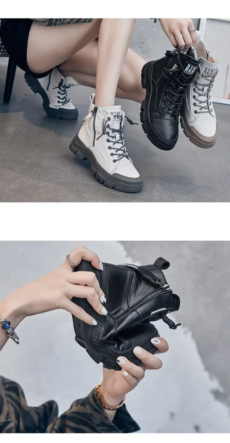 Autumn Early Winter Shoes Leather Fashion for Women Thick Sole High Gang Ankle Boots Brand Ladies Casual Lace-up Sports Footwear