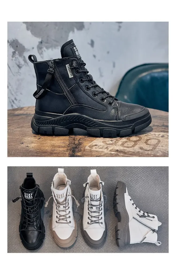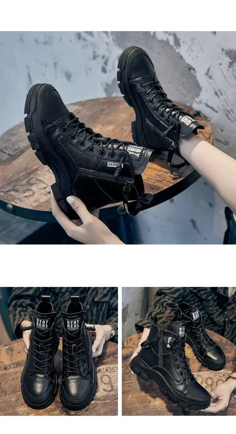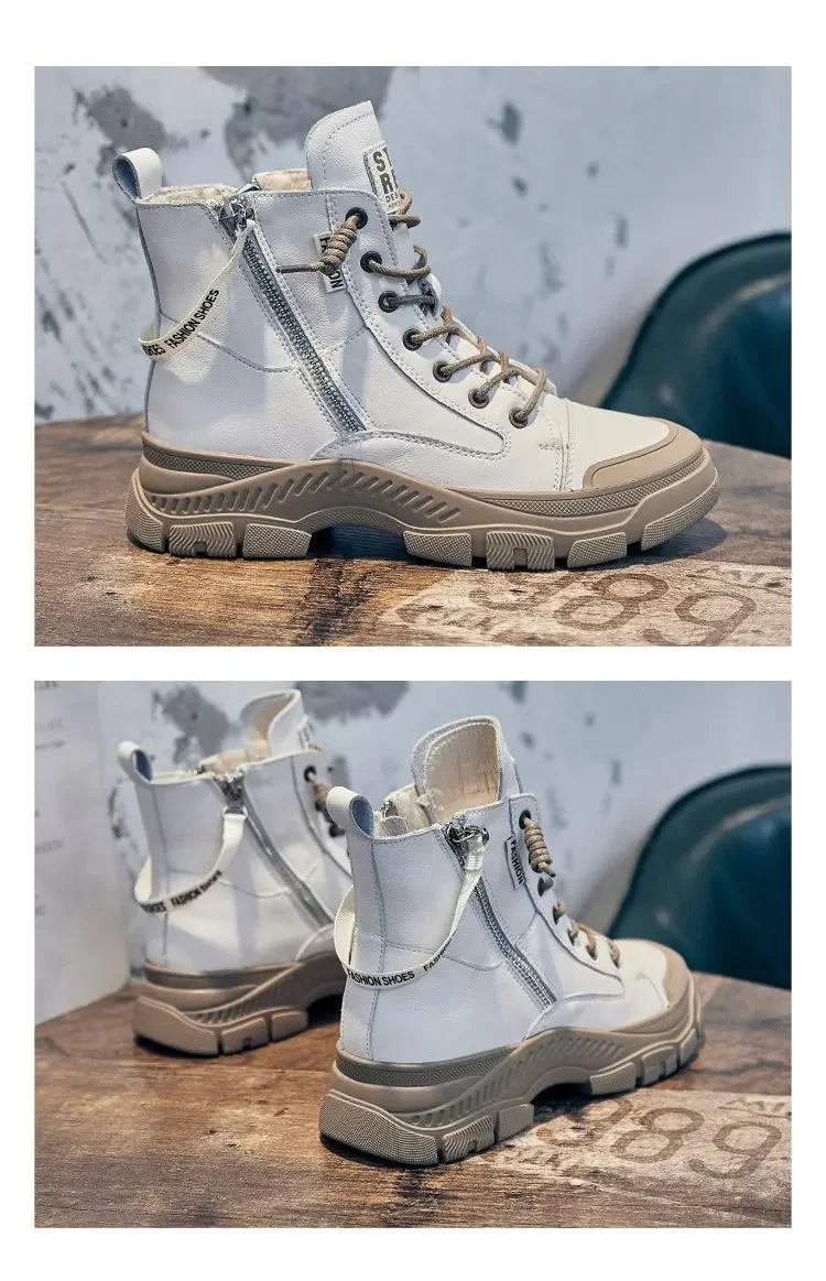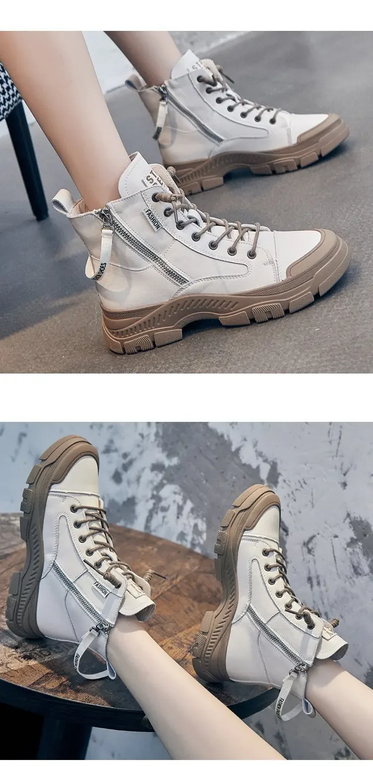 Autumn Early Winter Shoes Leather Fashion for Women Thick Sole High Gang Ankle Boots Brand Ladies Casual Lace-up Sports Footwear