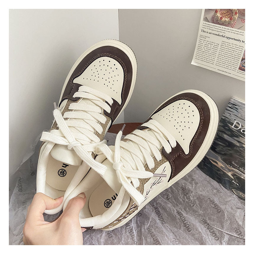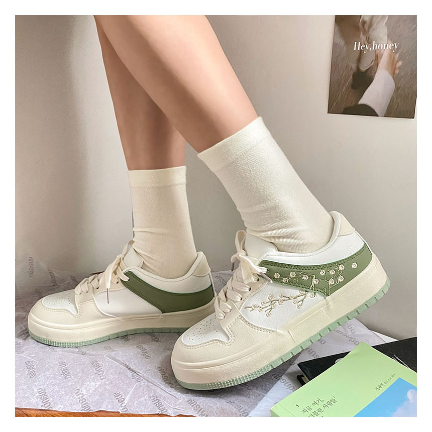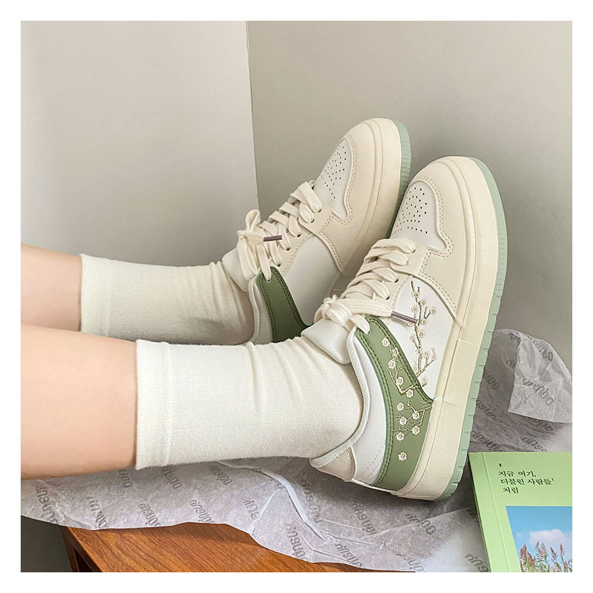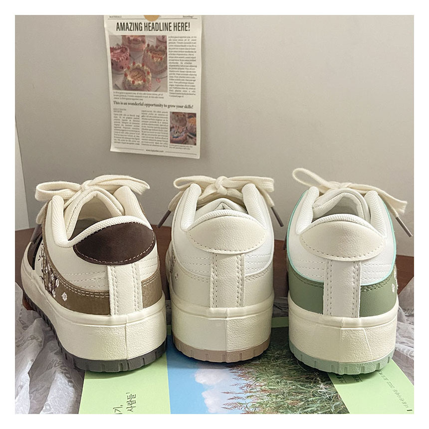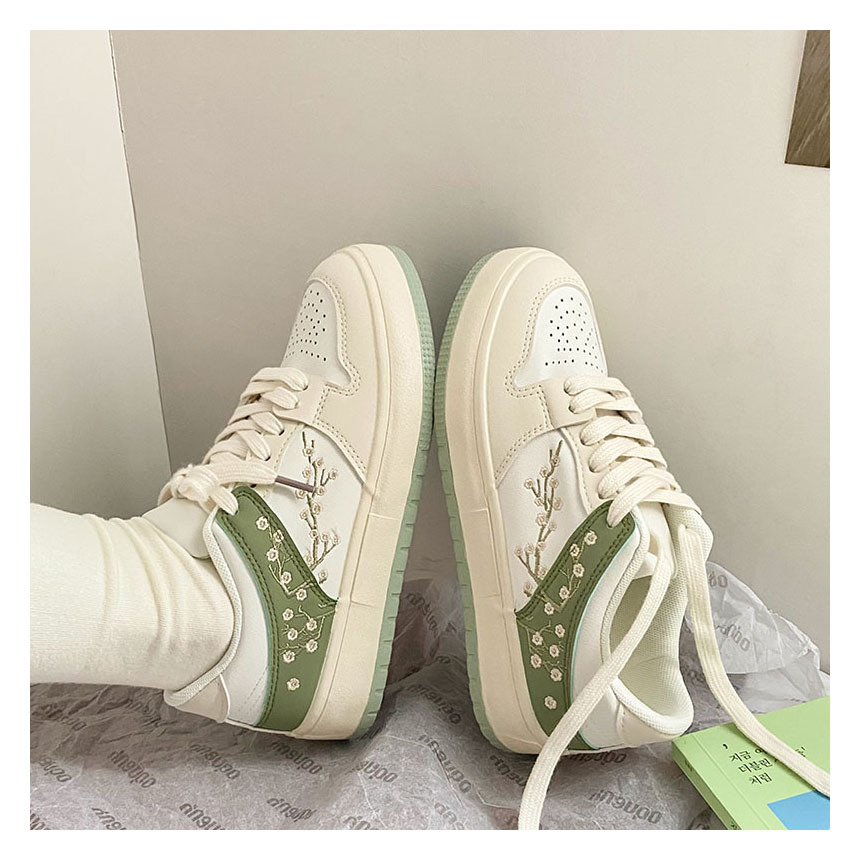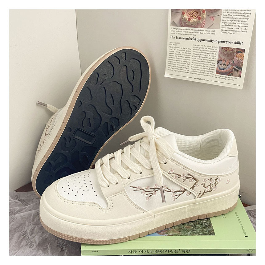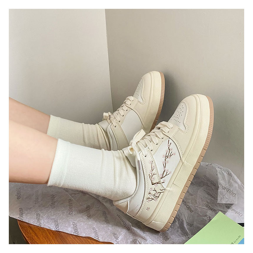 Autumn Flower Embroidery Design Women's Shoes Brown Low Top Leather Ladies Casual Shoes Thick Sole Sneakers 24-79
