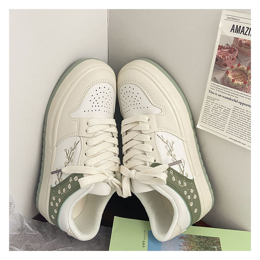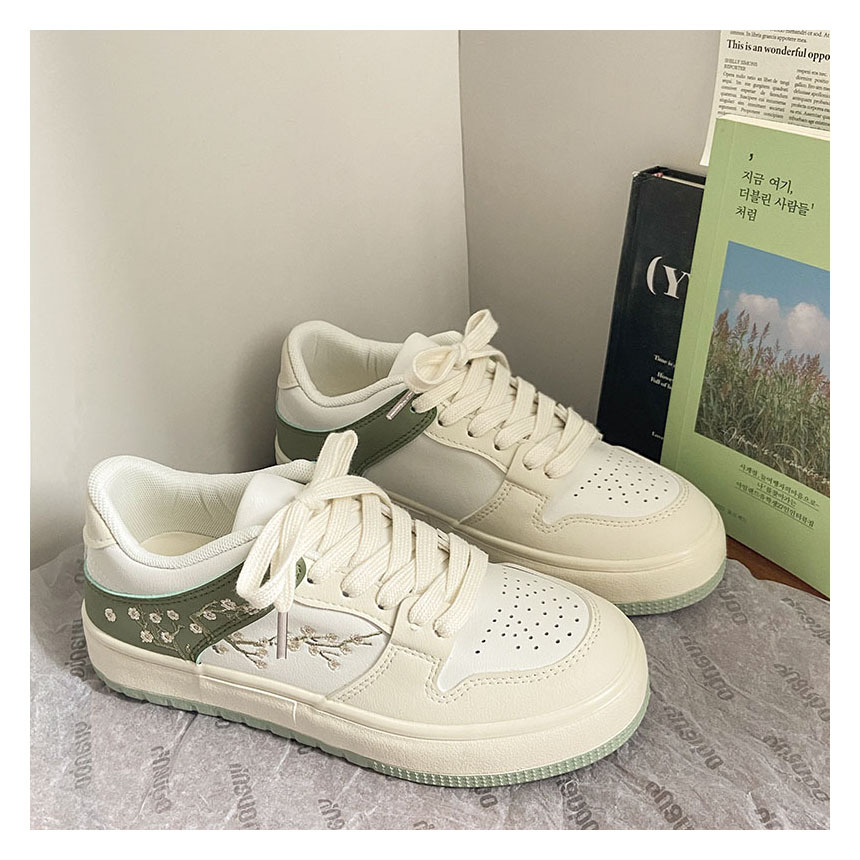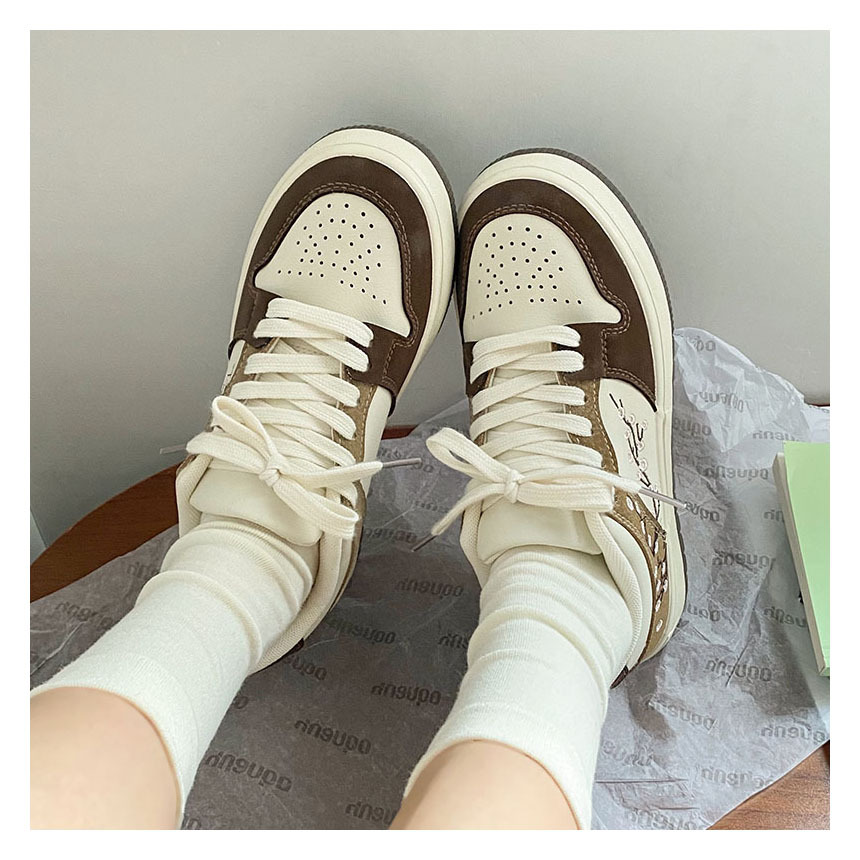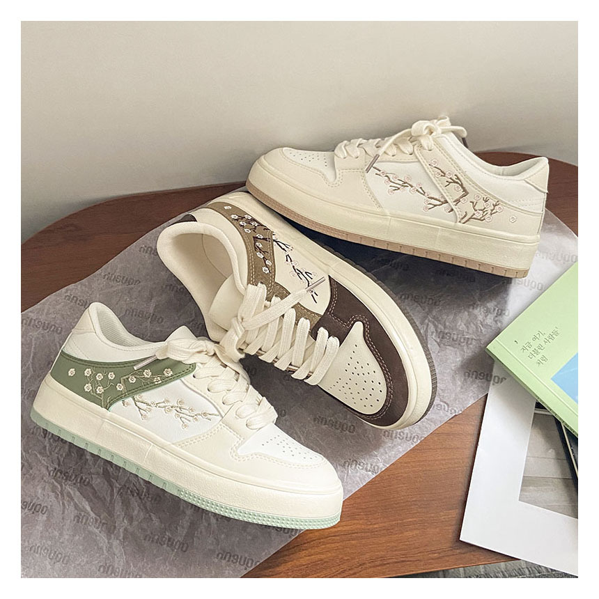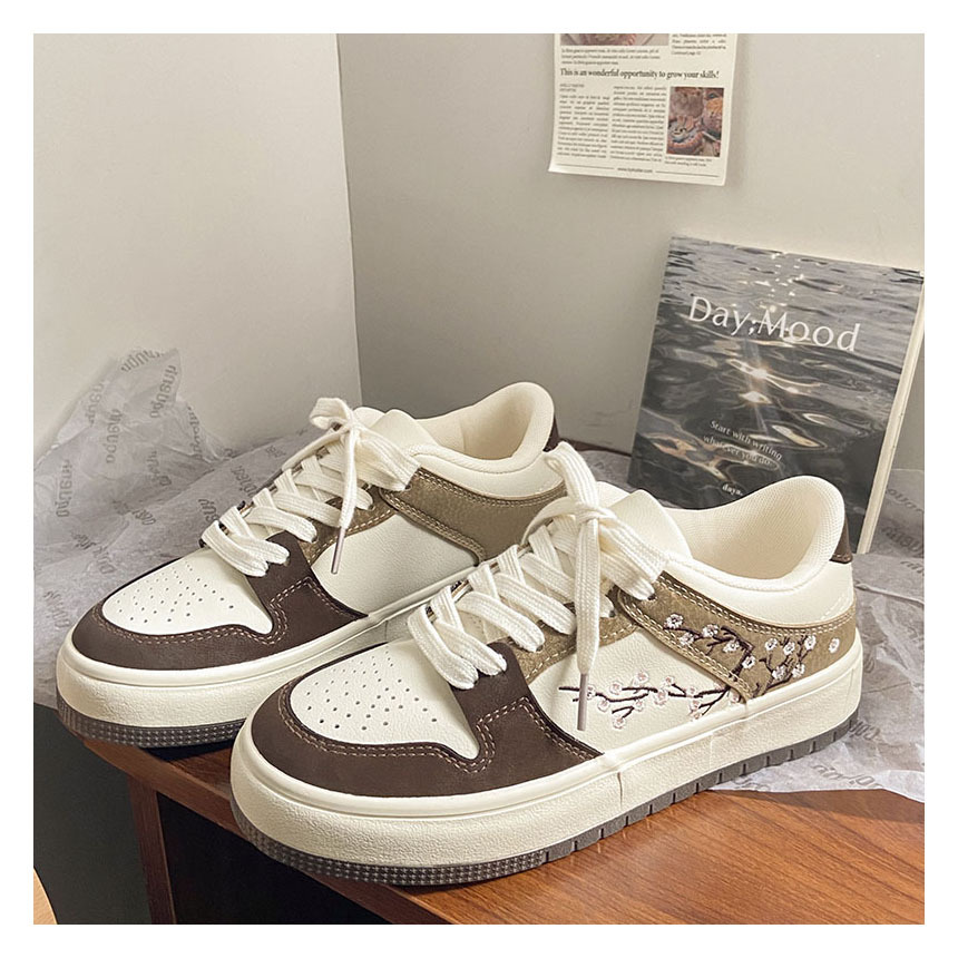 Autumn Flower Embroidery Design Women's Shoes Brown Low Top Leather Ladies Casual Shoes Thick Sole Sneakers 24-79