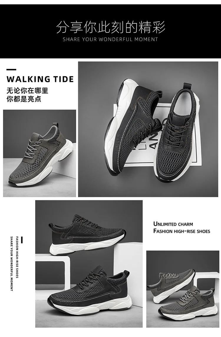Autumn Men's Inner Height Increasing Mesh Comfort Casual Shoes Sports Trend Breathable Invisible Height Increasing Men's Shoes