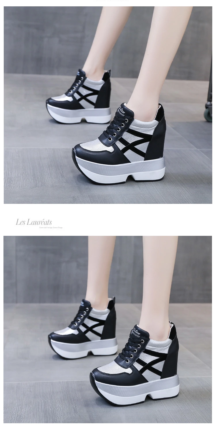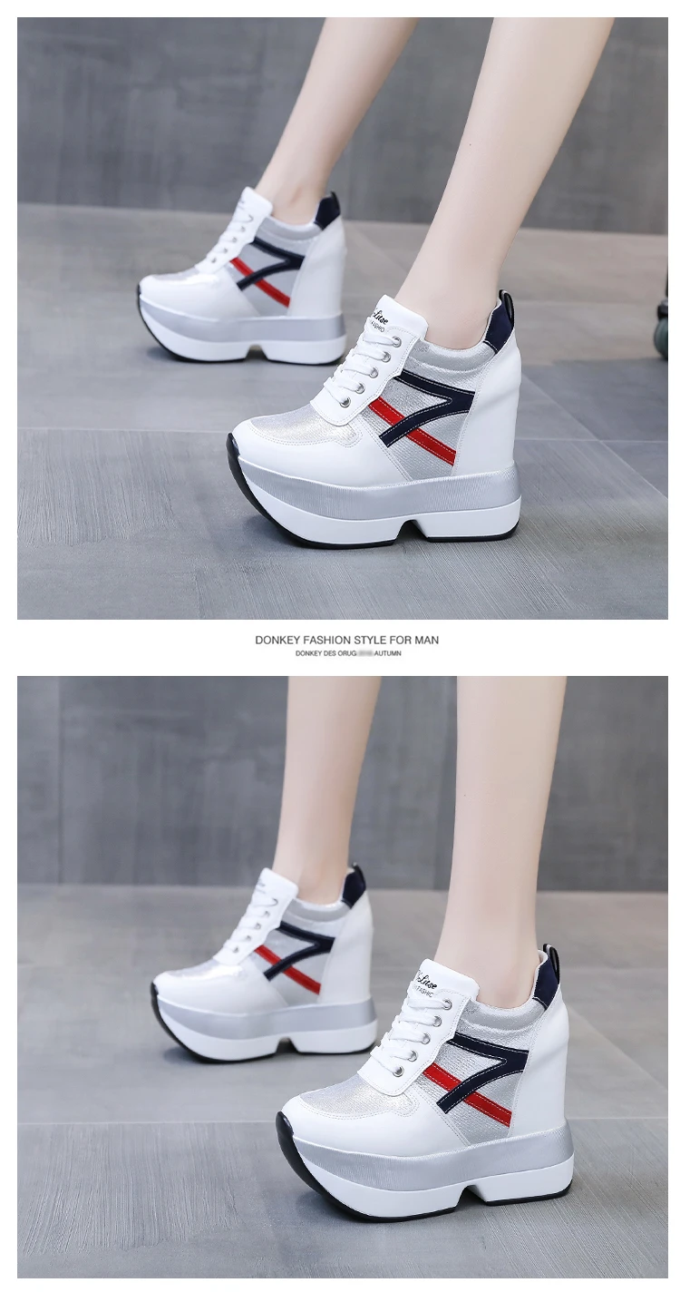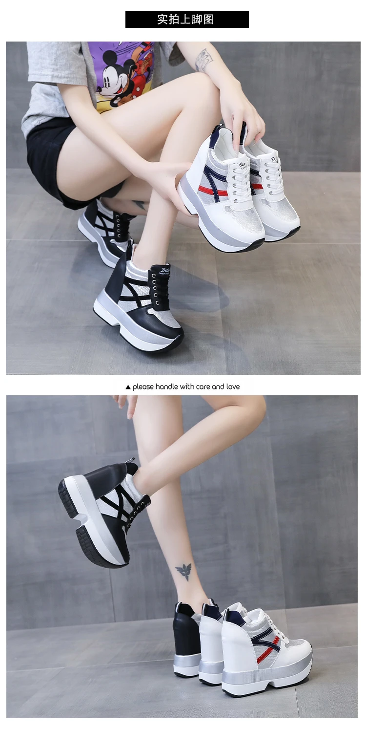 Autumn Women High Platform Shoes Height Increasing Casual Shoes 12 CM Thick Sole Trainers Breathable Shoes Women Sneakers