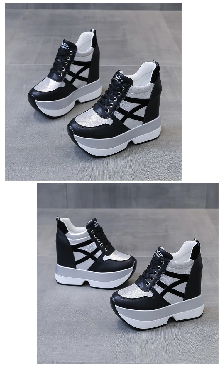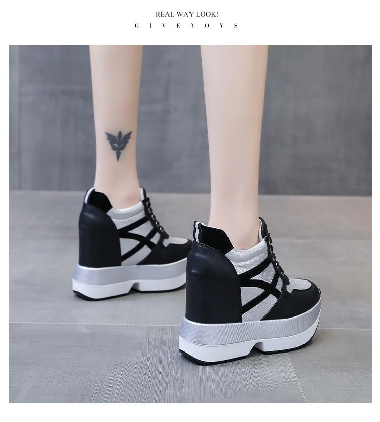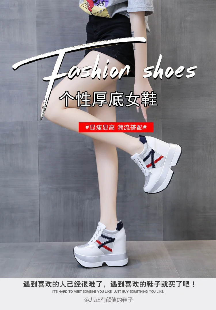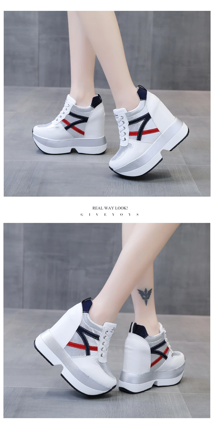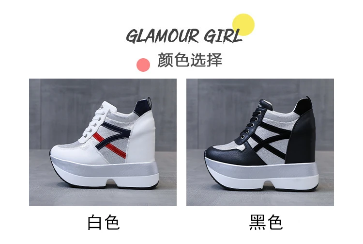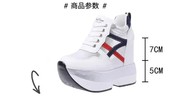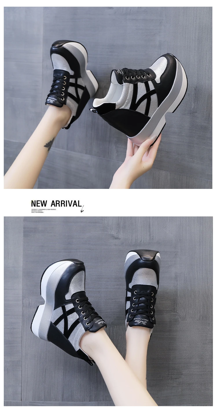 Autumn Women High Platform Shoes Height Increasing Casual Shoes 12 CM Thick Sole Trainers Breathable Shoes Women Sneakers