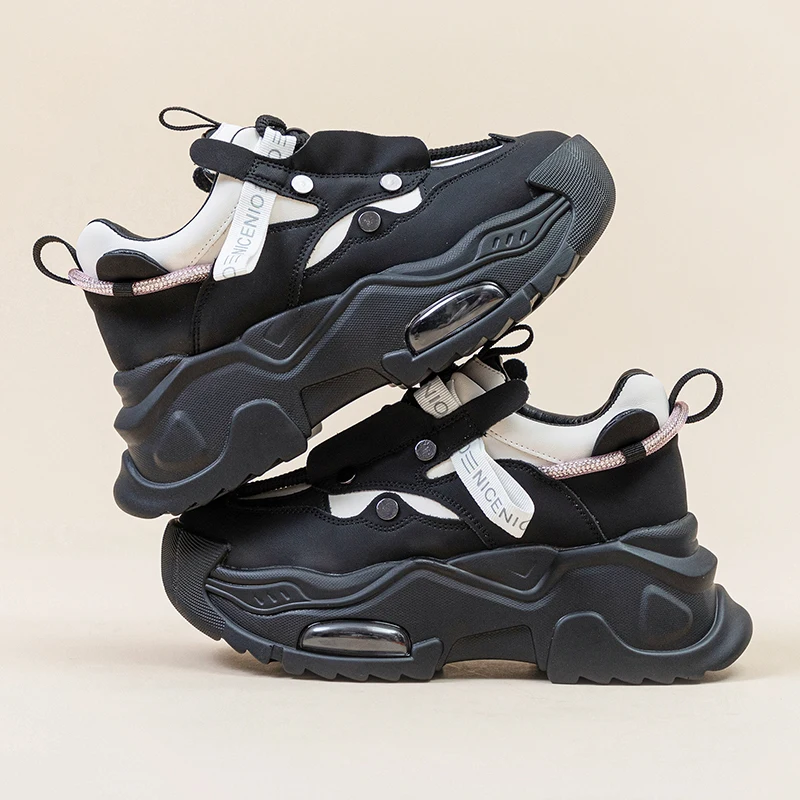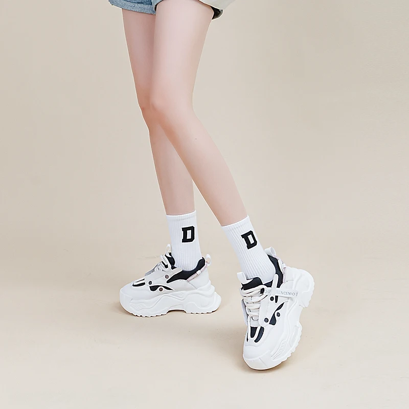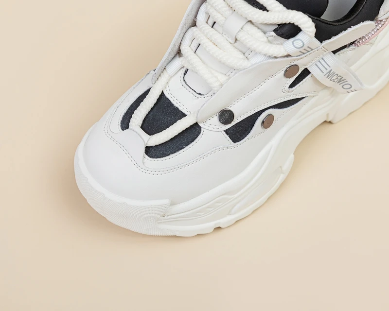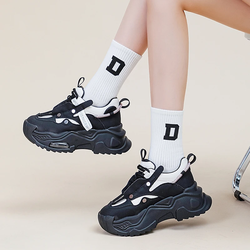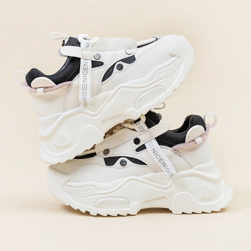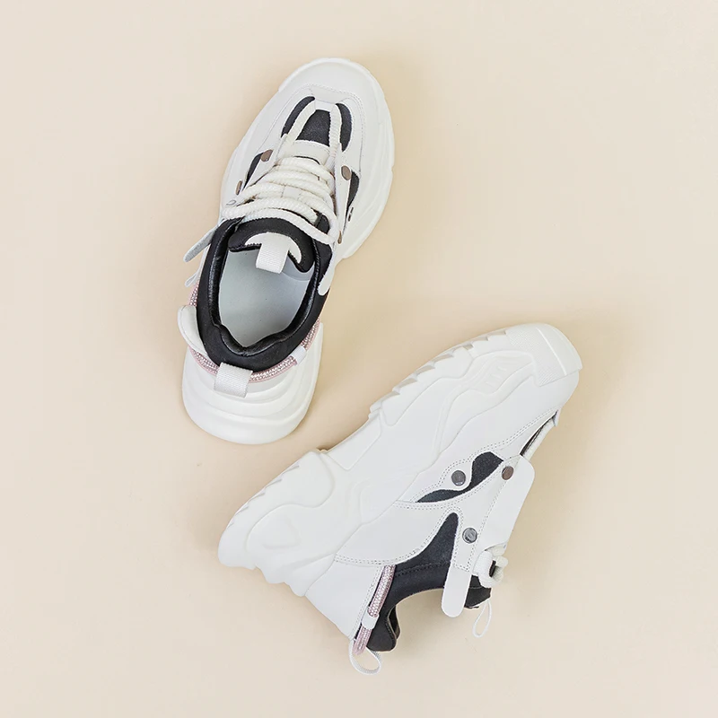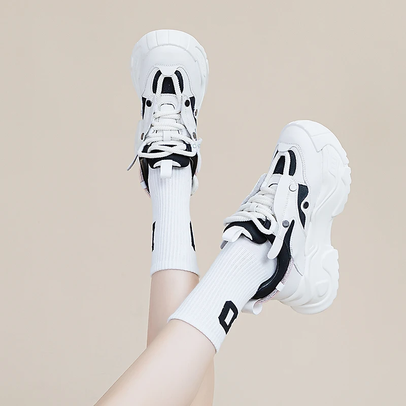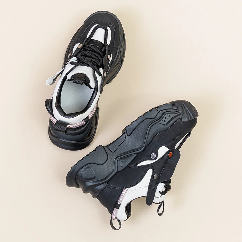 AUTUSPIN 6cm New Chunky Sneakers Shoes in Autumn Women Fashion Flats Platform Wedge Genuine Leather Fashion Vulcanized Shoes
